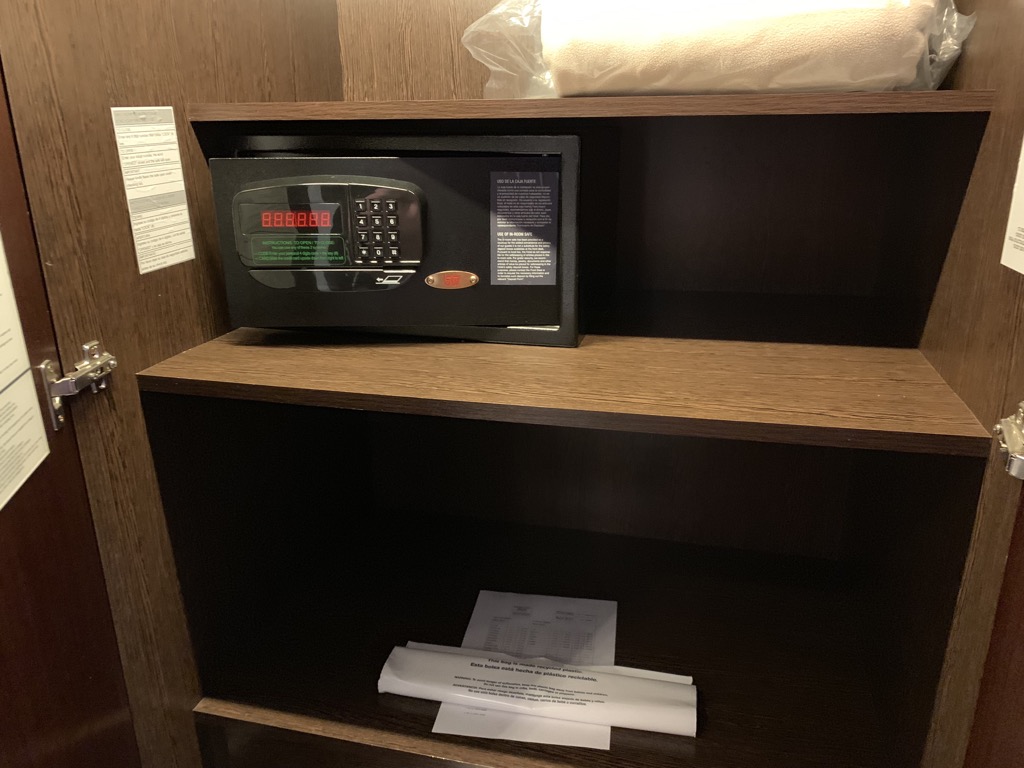In der Schrankwand befand sich neben einem Safe im Kleiderschrank auch noch eine Minibar. Letztere war eher unterdurchschnittlich bestückt. Die Preise für die Minibar waren hoteltypisch hoch.