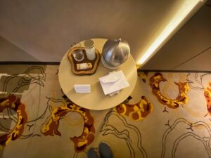 Meine Arrival Gifts waren schön im Zimmer verteilt und auch ein Vertreter der Hotelhierarchie ließ es sich nicht nehmen, einen persönlichen Brief an mich zu richten und von jemand anderem unterschreiben zu lassen.
