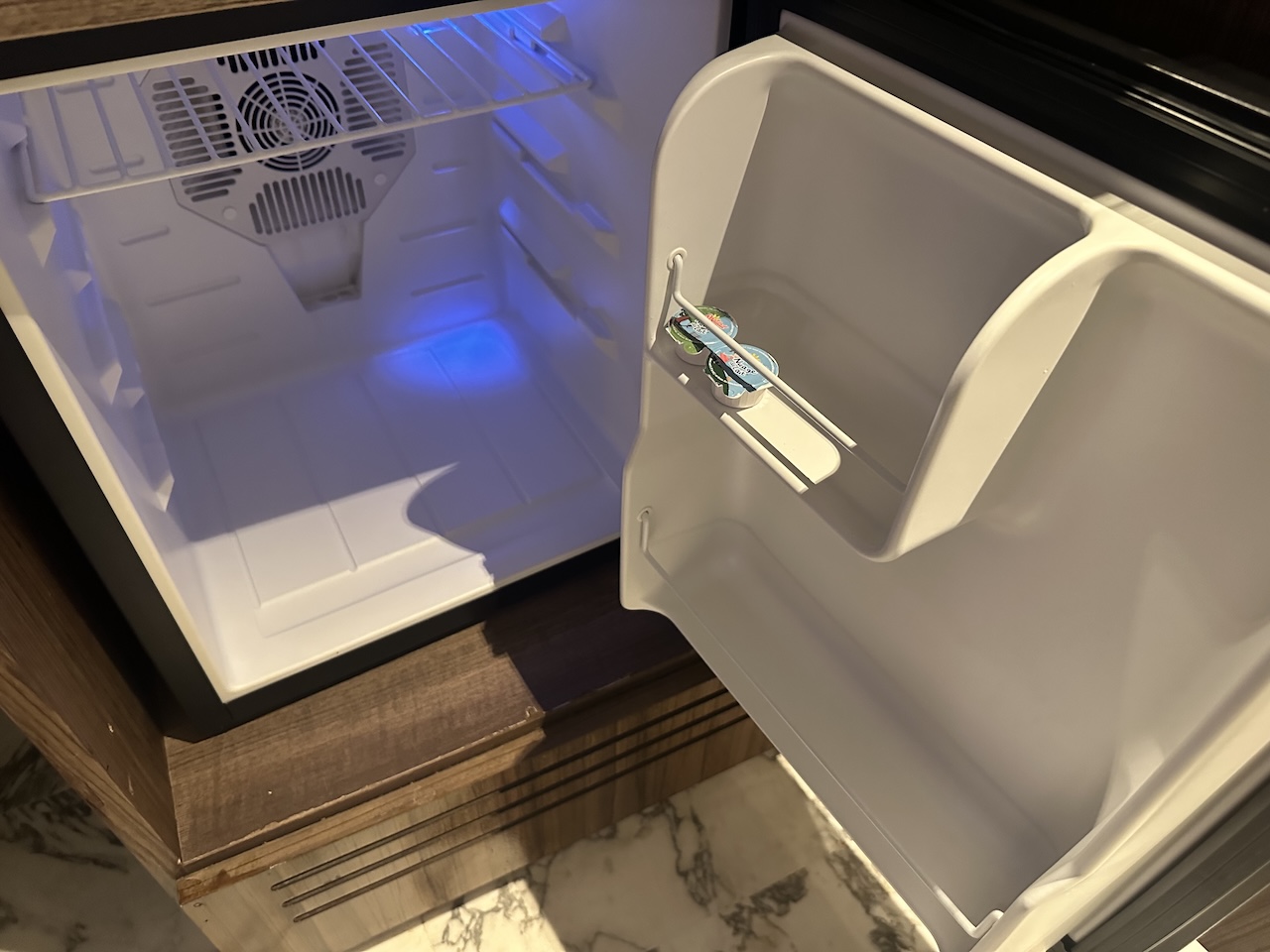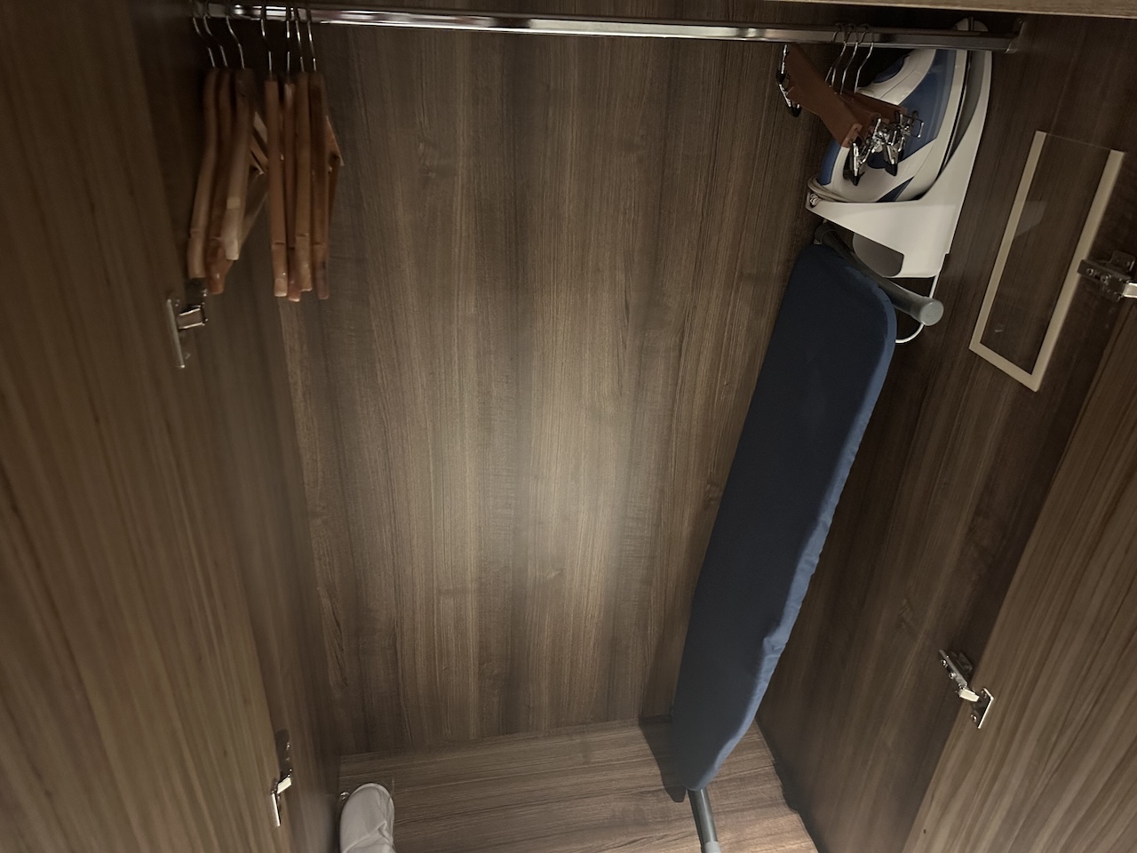 Neben dem Bett war noch ein Sofa, Sessel und Schreibtisch mit Bürostuhl verfügbar. Es gab zwei große Schränke mit Bügeleisen und Safe, daneben waren auch noch ein Kühlschrank und ein Wasserkocher.