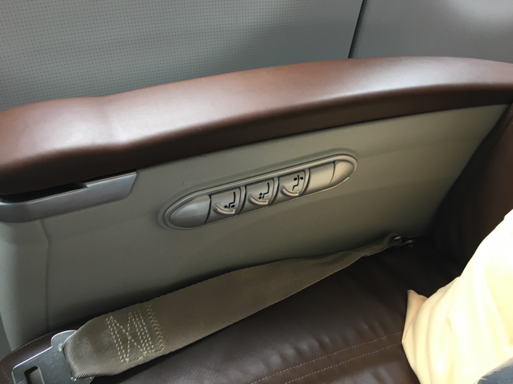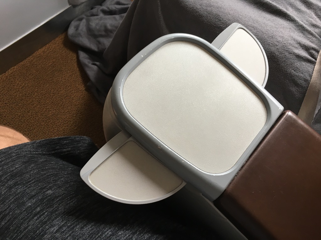Neben einem kleinen Kissen und einer Decke auf jedem Sitz, war das einzige nennenswerte Gimick des Sitzes ein kleiner, ausziehbarer Cocktailtisch in der Mittelarmlehne.