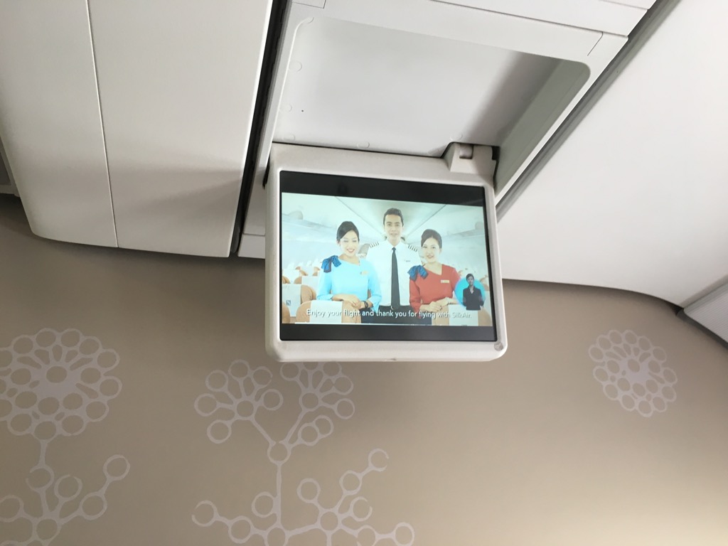 Der SilkAir Airbus A319 verfügt zwar über Monitore an der Decke, welche genutzt werden um die Sicherheitsanweisung zu zeigen, allerdings verfügen die Sitze selbst über keinen Audioausgang oder gar einen eigenen Monitor um Filme oder Serien zu schauen.
