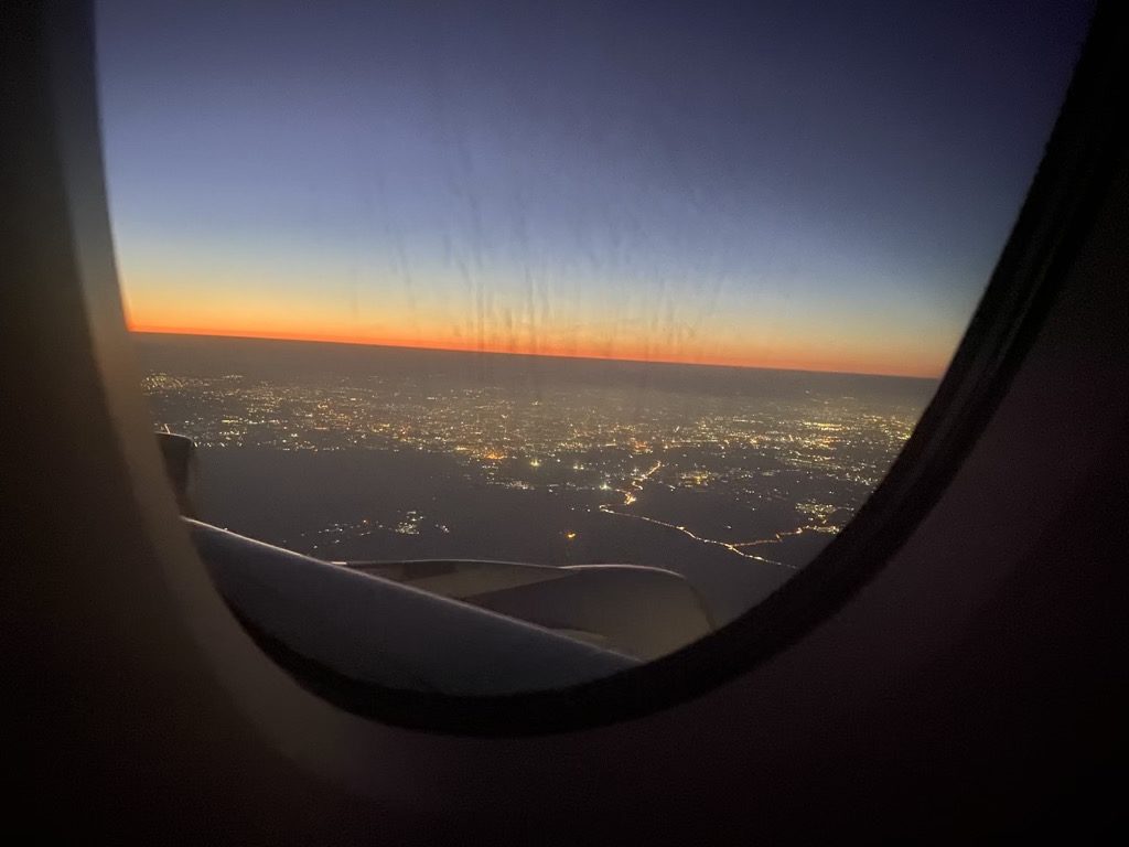 Nach drei sehr erholsamen Stunden Schlaf begab sich der Flieger in den Anflug auf Delhi. In den letzten Minuten wurde noch einmal ein Kaffee oder ein Getränk angeboten, um den Flug abzurunden.