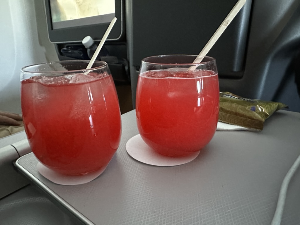 Während eine Stewardess die Mahlzeitenwünsche abgefragt hat, hat uns die andere Mitarbeiterin mit dem Aperitif versorgt.