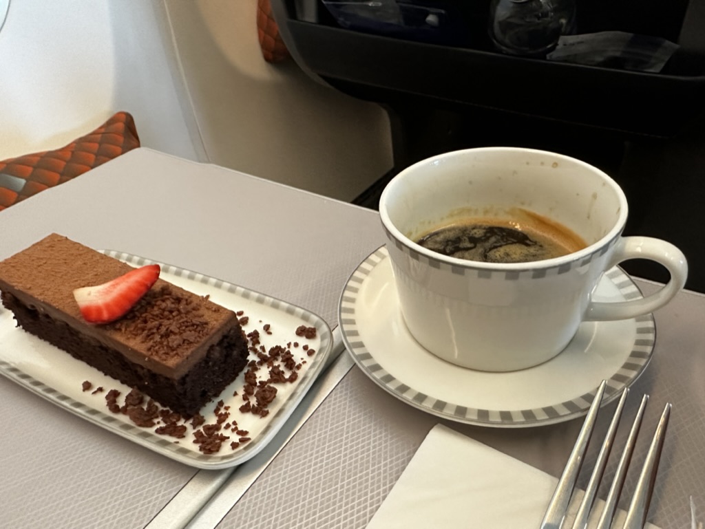 Amenity Kits gibt es nicht, dafür erhält man auch Anfrage Produkte wie Ohrstöpsel, Schlafbrille, Kamm, Slipper, Zahnbürste usw. Das Essen wurde zügig serviert, mein Steak war rosa und saftig aber nicht ganz zart. Trotzdem hat alles lecker geschmeckt.