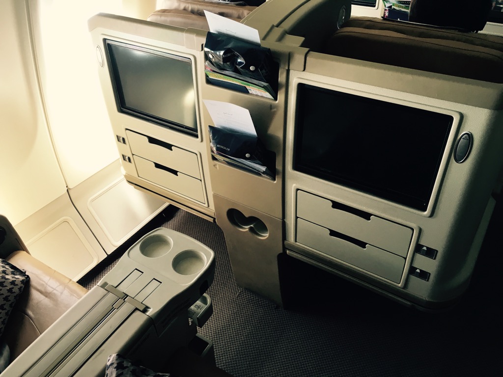 Wie oben bereits einmal erwähnt, sind die Sitze durchaus bequem und bieten für eine regionale Business Class viel Platz. Auch eine angenehme Liegeposition gibt es, wobei sie nicht vollkommen flach ist und man daher hier nicht so gut schälft, wie auf einem modernen Langstrecken-Business Class Sitz. Allerdings ist dies für einen 2 Stunden Flug sicherlich großer Luxus.