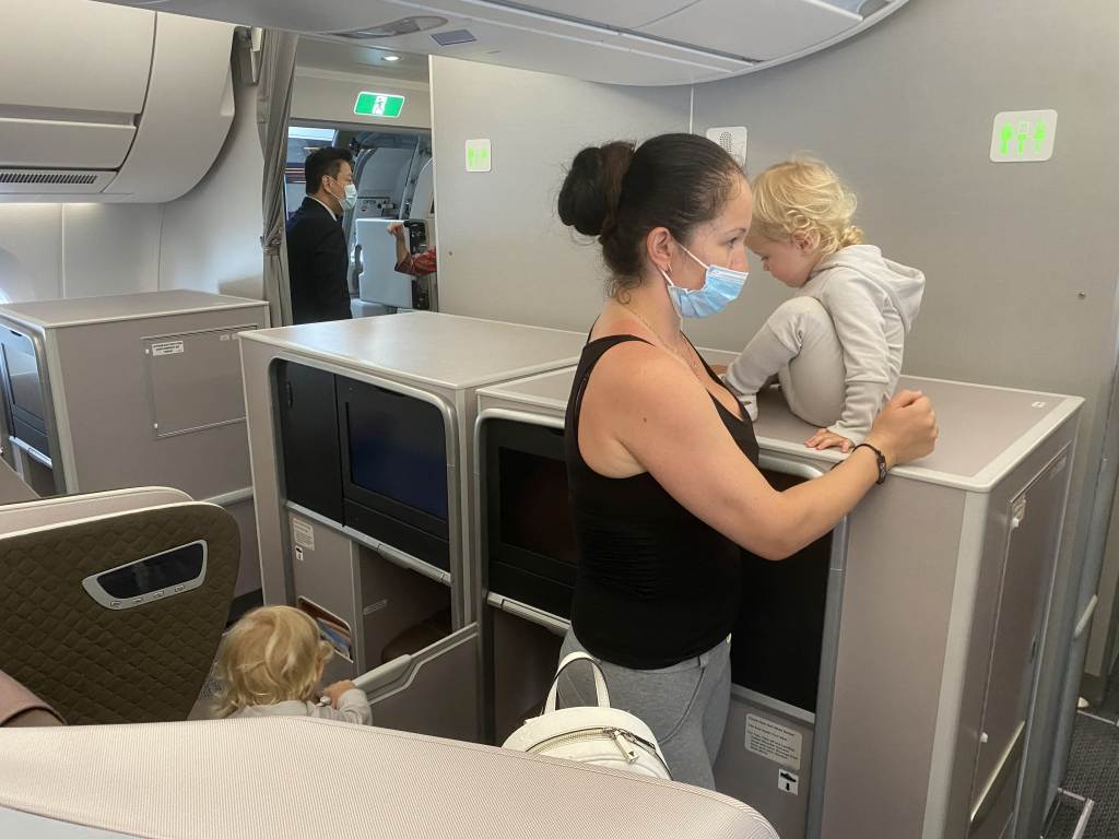 Nicht erst dieser Moment brach das Eis mit der Crew. Diesmal hatte die eingesetzte Kabinencrew von Beginn an eine extrem positive Einstellung. Und auch total viel Interesse an uns und den Kindern. Insbesondere als meine Frau sich als ehemaligen Flugbegleiterin outete, war genug Gesprächsstoff da. Das Team kümmerte sich immer Mal wieder auch kurz um unsere Kinder, um uns einen Moment zum Durchatmen oder andere Dinge erledigen zu gönnen.