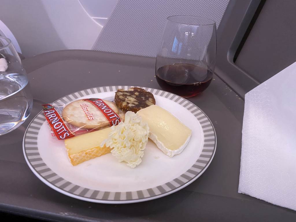 Was unterschied diesen Flug von den vorherigen: Zwar durften wir wieder in den gleichen Sitzen Platz nehmen, aber da wir nun in einem Airbus A350 zu Gast waren, gab es ein anderes Kabinendesign. Außerdem konnten wir in Sachen Bord-Service aus dem Vollen schöpfen. Und aus dem Vollen ist bedeutend mehr als andere Fluggesellschaften auf der Langstrecken Business Class anbieten.