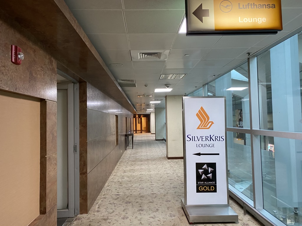 Die Zeit am Boden verbrachte ich in der gut versteckten SilverKris-Lounge, welche Christoph auf dem Weg nach Singapur in der Suite Class für Euch schon reviewt hat. Diese findet Ihr, wenn Ihr den Lounge-Schildern im Hauptterminal folgt. Dann nehmt ihr den Fahrstuhl in die 3. Etage und folgt erneut einem der unzähligen Lounge-Aufstellern.