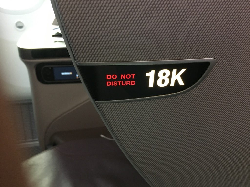 Generell wirkte der Sitz auf mich sehr durchdacht und hatte eine ganze Reiher schöner Details, wie z.B. die Knöpfe zur Sitzverstellung, oder auch die Leseleuchte, welche sich individuell einstellen lässt. Auch das „Do not disturb“ Schild war eine nette Idee.