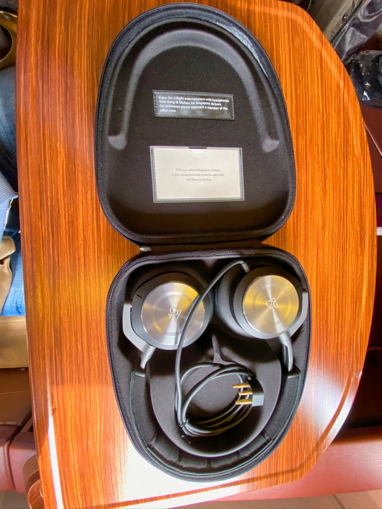 Kopfhörer, die Singapore Airlines bereitstellt, sind von B&O. Vom Klang und Fit fand ich sie ok, habe aber aus Gewohnheit wieder auf meine eigenen Kopfhörer zurückgegriffen.
