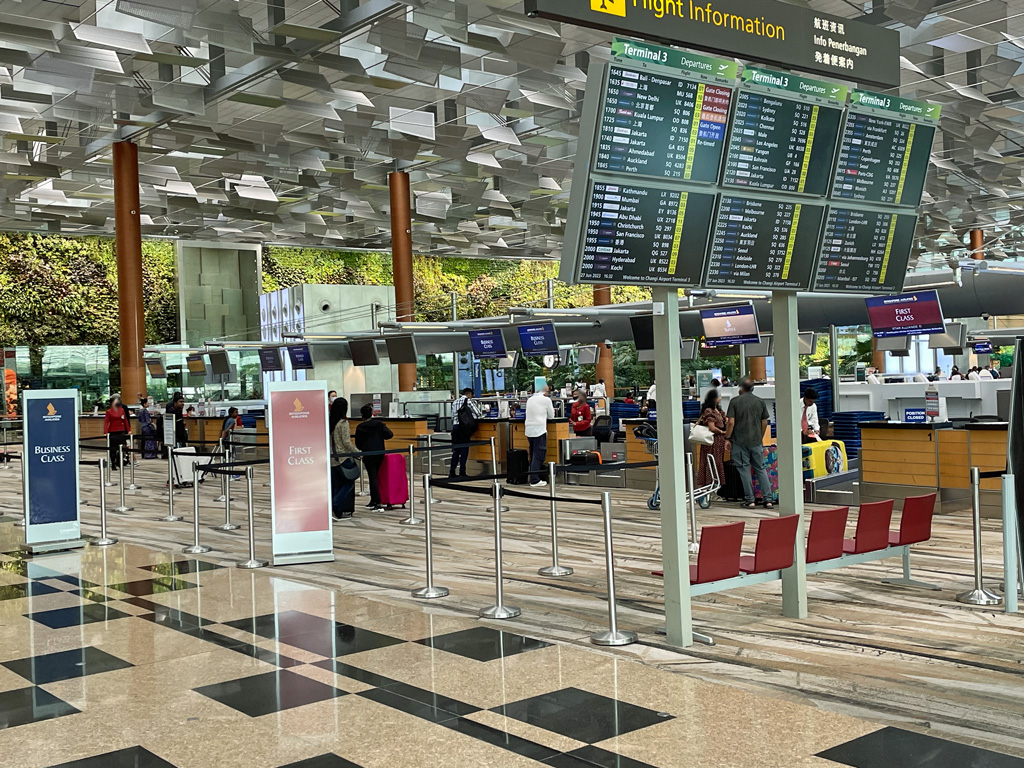 An der Sicherheitskontrolle hat man in diesem exklusiven Check-In Bereich keinen Vorteil, die Kontrolle erfolgt in Singapur erst am Gate. Immerhin ging die Passinspektion bei der Ausreise zügig vonstatten.