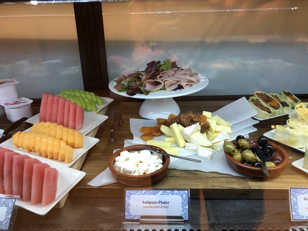 Salate, Wraps, Obst, Käse…viele Varianten für eine leichte Stärkung, die allesamt appetitlich aussahen. Natürlich gab es auch nur ein paar Nüsse oder Knabbereien zu den Getränken. Wer hingegen richtig essen wollte um den kurzen Flug komplett zum Schlafen zu nutzen hatte auch drei warme Optionen und Suppe zur Auswahl.