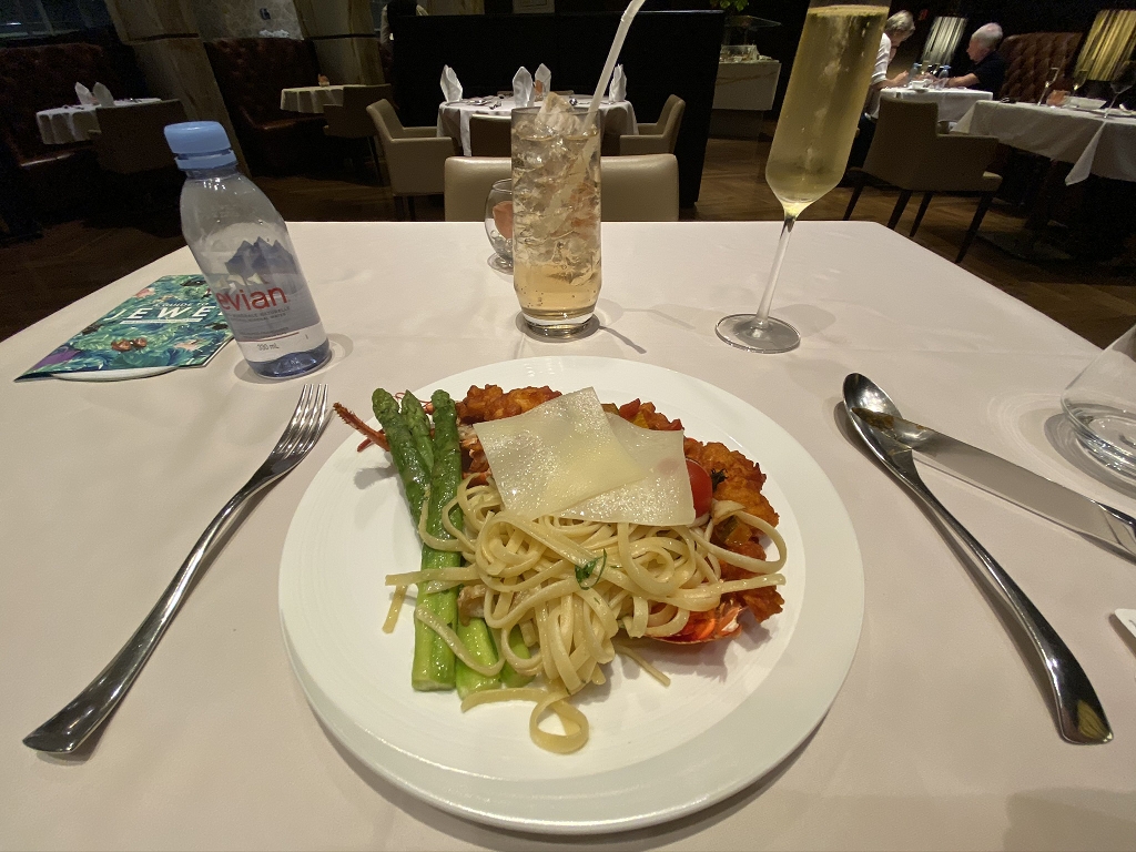 Das Essen war beeindruckend gut. Die Champagnerbegleitung sowieso. Der Service war sehr personenabhängig. Zwischen superschnellem und freundlichen Service und „Was ist ein Singapore Sling?“ war alles dabei.
