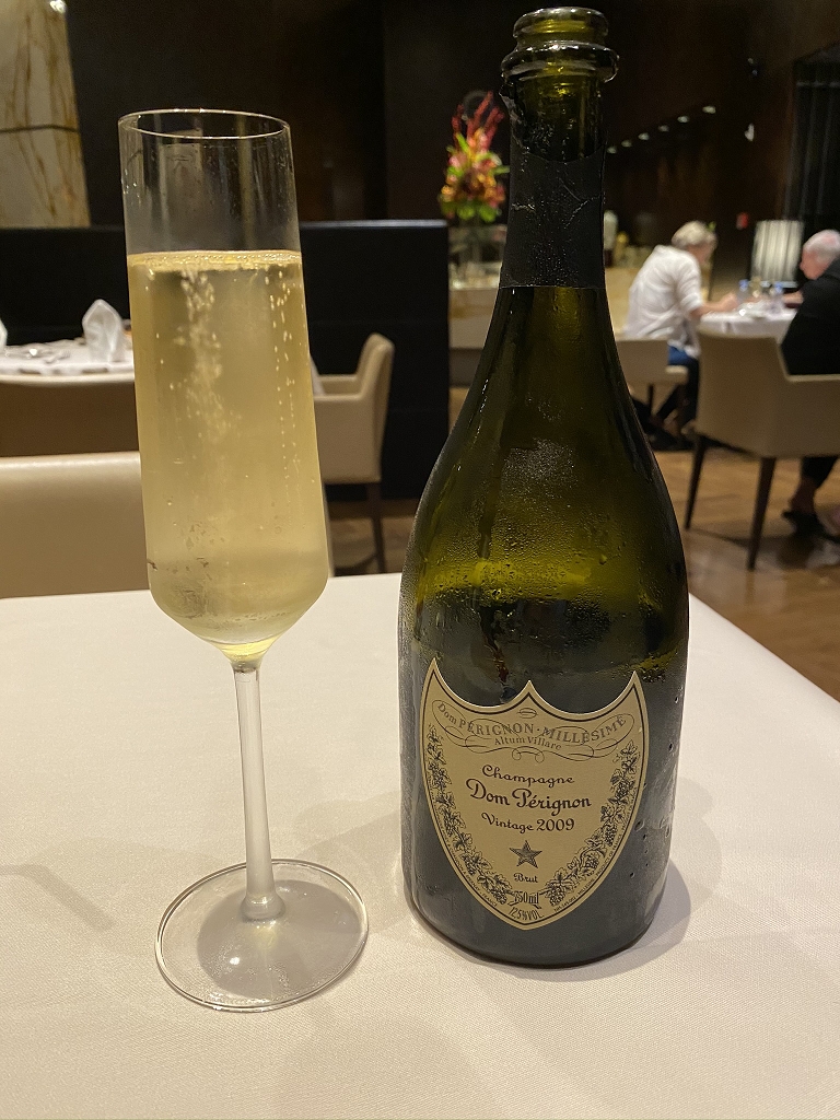 Bereits als ich Platz nahm kam eine Mitarbeiterin mit einem frohen Lächeln, einem Glas sowie einer Flasche Dom Perignon zu mir. Sie reagierte fast erschreckt als ich zusätzlich noch nicht-alkoholische Getränke bestellte.
