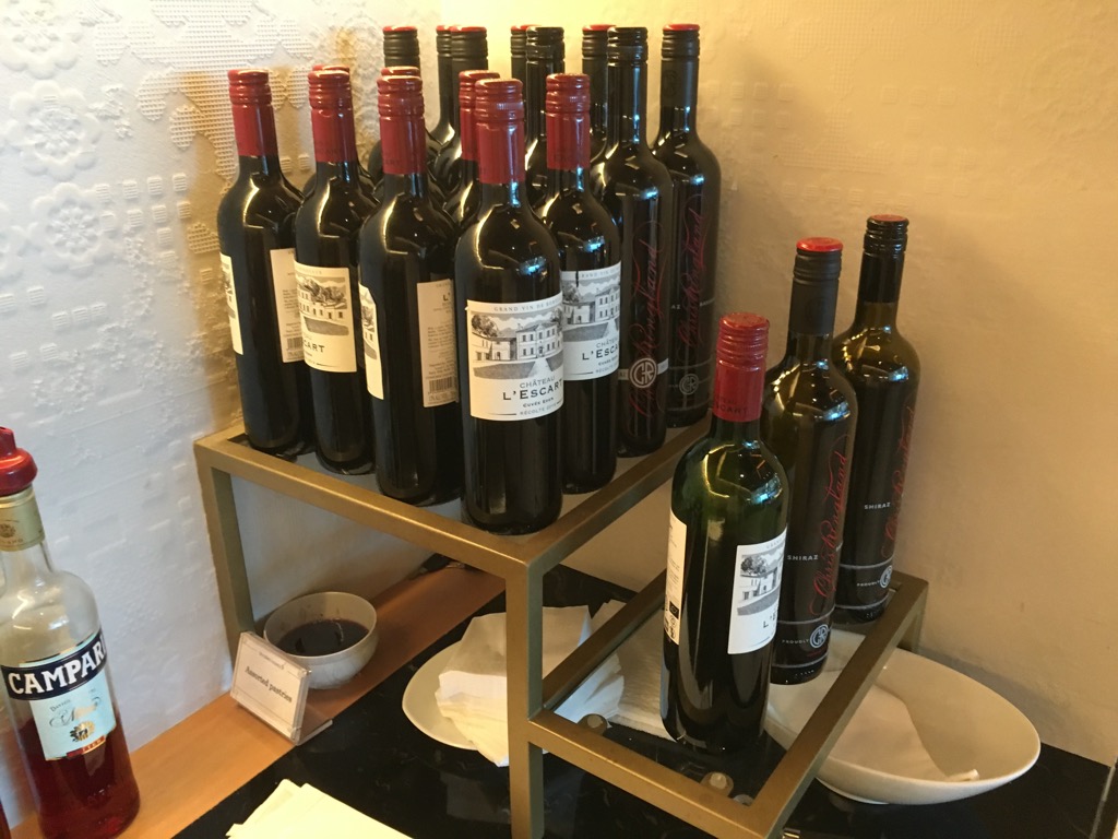 Das Angebot an Getränken war zwar umfangreich, allerdings hat man auf eine bediente Bar, wie in der Singapore Airlines Lounge in London, oder in Singapur verzichtet. Neben alkoholfreien Getränken gab es natürlich auch verschieden Weine und Champagner, sowie Spirituosen auf dem Buffet.