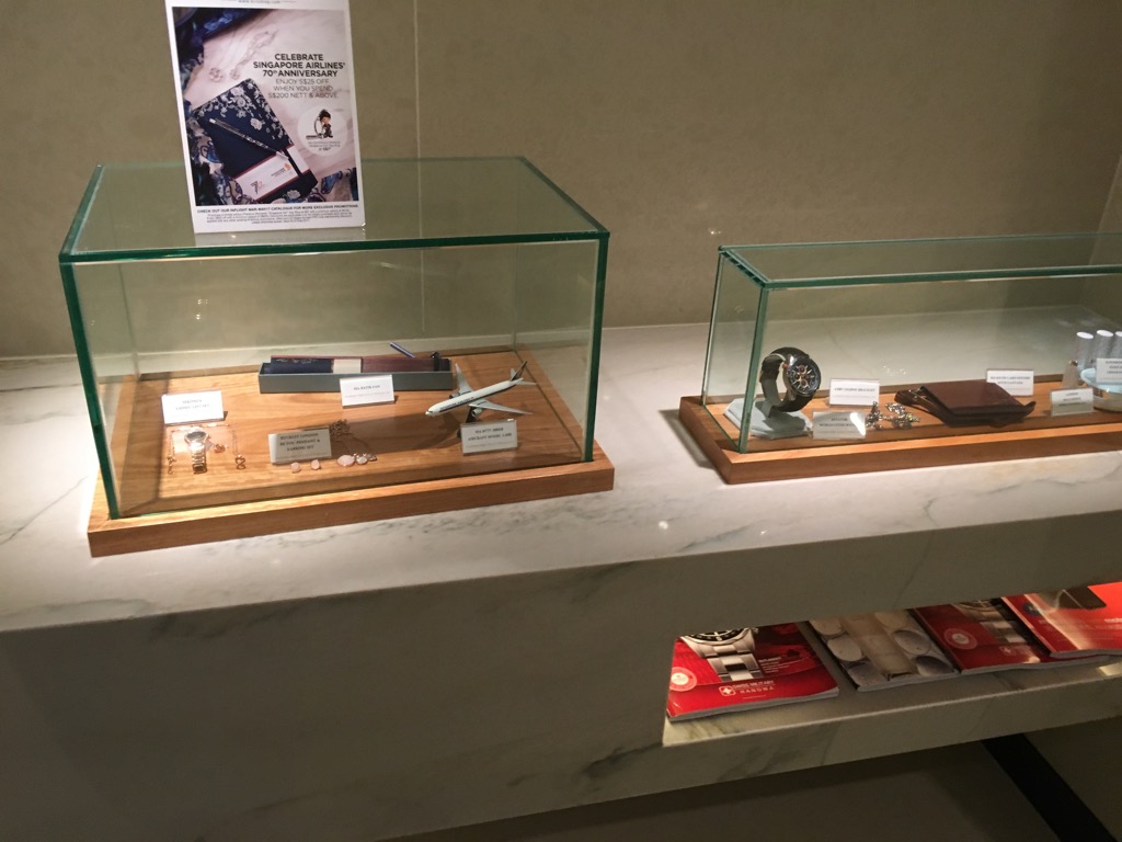 Neben einigen internationalen Magazinen und Zeitungen, gab es auch noch ein Display mit Produkten aus dem Singapore Airlines Inflight Shopping Angebot.