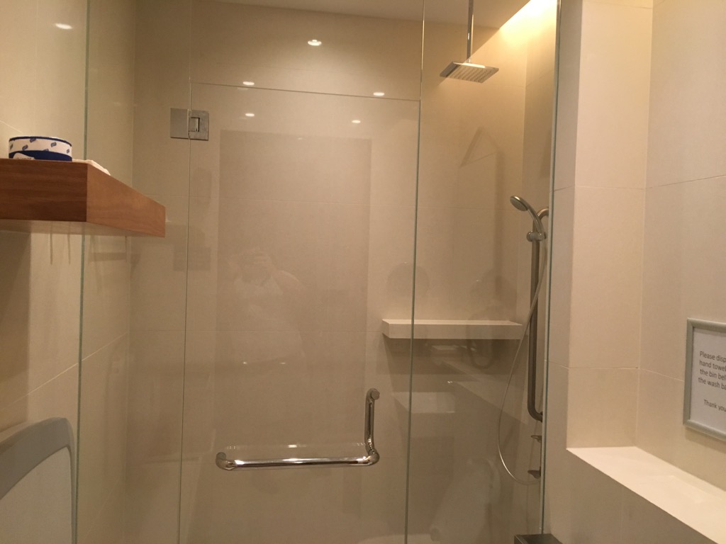 Sehr positiv fand ich, dass es neben den Toiletten auch zwei Duschen in der Lounge gab. Vor einem Langstreckenflug noch einmal duschen zu können, ist für mich fast der größte Luxus in einer Airport Lounge.