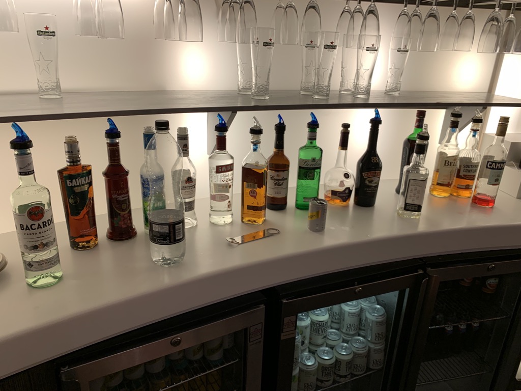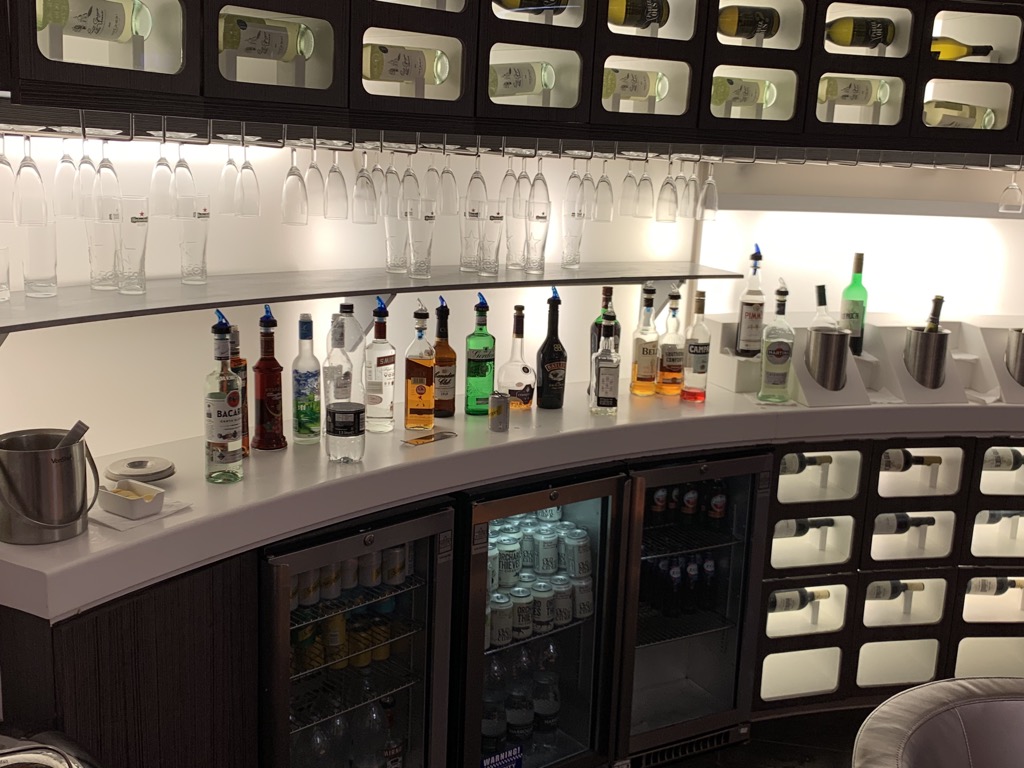 In der Nähe des Buffets gab es auch eine self service Bar mit einer guten Auswahl an alkoholfreien und alkoholischen Getränken. Auch wenn ich hier keine Highlights entdeckt habe, würde ich das Angebot an Getränken als solide und für eine Business Lounge sogar als gut bezeichnen.