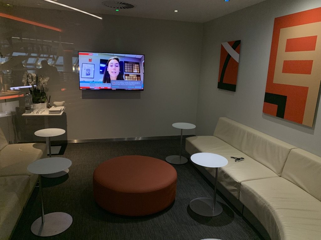 Im zweiten Stock der SkyTeam Lounge findet man ganz hinten in einer Ecke einen TV Raum, welcher von der Lounge abgetrennt ist. Hier hängt ein Fernseher, bei welchem man das Programm umstellen kann. Wenn hier wirklich alle Plätze belegt sind, muss man sich aber auf ein Programm einigen. Gerade während Fußballspielen könnte ich es mir schwierig vorstellen.
