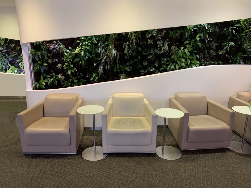 Das Design der SkyTeam Lounge ist sehr modern und hell, was mir persönlich sehr gut gefällt. Durch die großen Fenster hatte man einen hervorragenden Blick auf das Vorfeld und auch viel Tageslicht in der Lounge. Sehr interessant fand ich auch die vielen Instalationen mit echten Kletterpflanzen in den Wänden, welchen der SkyTeam Lounge ihren ganz eigenen Touch geben.