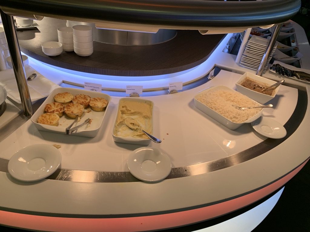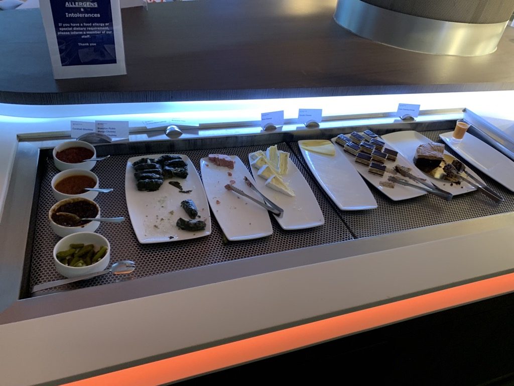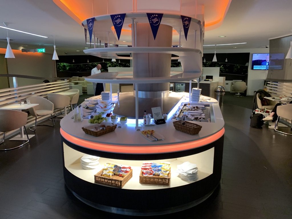 Zentraler Bestanteil der SkyTeam Lounge war in jedem der beiden Stockwerke eine große Buffetinsel, auf welcher eine überraschend große Auswahl an Speisen angeboten wurde.
