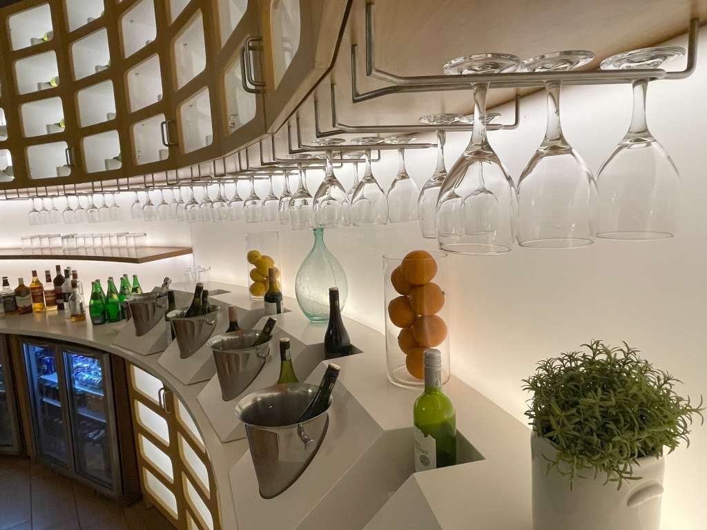 Das nächste Highlight bot die Bar. Hier gilt zwar das Motto „Selbst ist der Mann“, aber dafür sind der Kreativität keine Grenzen gesetzt. Denn neben einer gut sortierten Auswahl an Weinen gab es auch ein hervorragendes Angebot an Spirituosen. Dank diverser Mixer wird vermutlich jeder Hobby-Barkeeper in der Lounge glücklich. Mich machte der Russian Standard Wodka glücklich, den es aus Gründen derzeit nicht in Deutschland gibt. Der lag zwar nicht auf Eis, komplettierte jedoch eine hervorragende Bloody Mary.