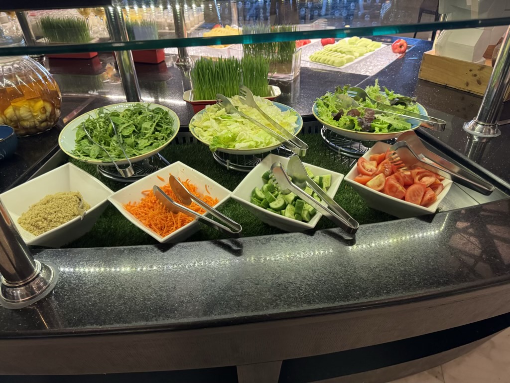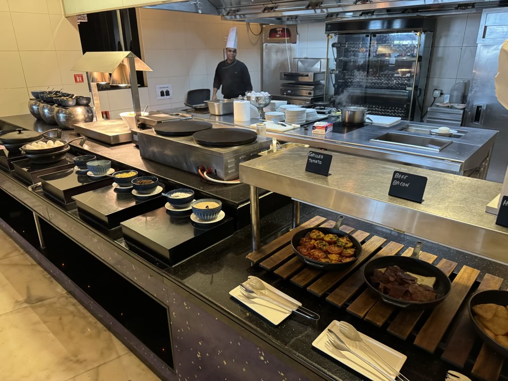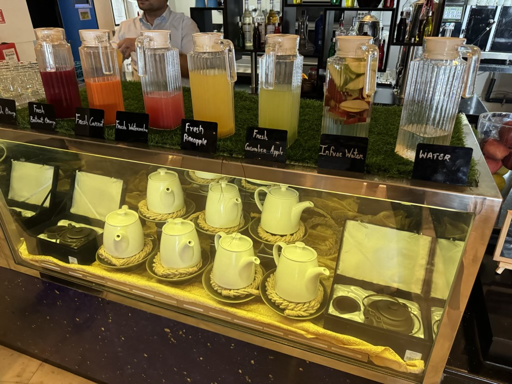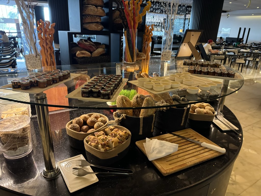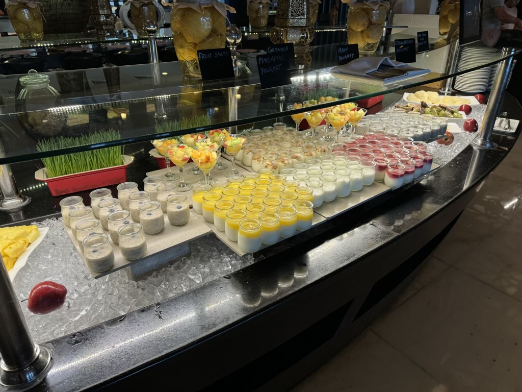 Das Buffet war umfangreich und sah sehr ansprechend aus. Viele verschiedene warme und kalte Speisen aus verschiedenen Nationen, die alle sehr gut schmeckten. An einer Live Cooking Station konnte man sich auch frische Eierspeisen, inklusive Eggs Benedict bestellen. Besonders angetan hatten es mir und den beiden Mädels die frischen Smoothies und Shots mit verschiedenen Geschmäckern. Christoph hat das Frühstück als "sehr gut" beschrieben, was schon ein Kompliment ist, denn wenn sich einer auskennt, dann er. Richtig schlecht hingegen war der Kaffee. Und das war kein Versehen beim ersten Kaffee, denn der zweite schmeckte genauso. Sein Kommentar dazu ist noch heute: ich weiß nicht, was genau man an einem Kaffeevollautomaten einstellen muss um so einen miesen Kaffee zu bekommen. Selbst mit Milch musste er ihn stehen lassen. Schade, denn ein guter Kaffee am Morgen ist vielen fast wichtiger, als eine große Auswahl am Buffet.
