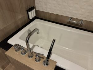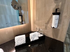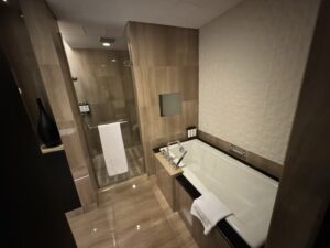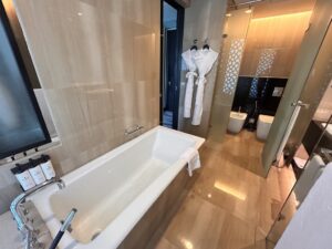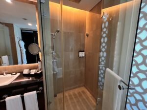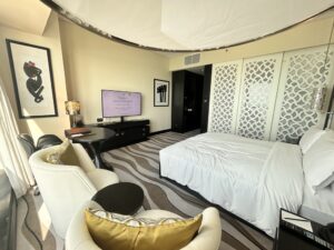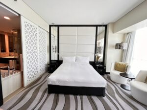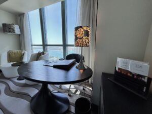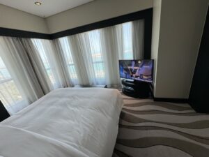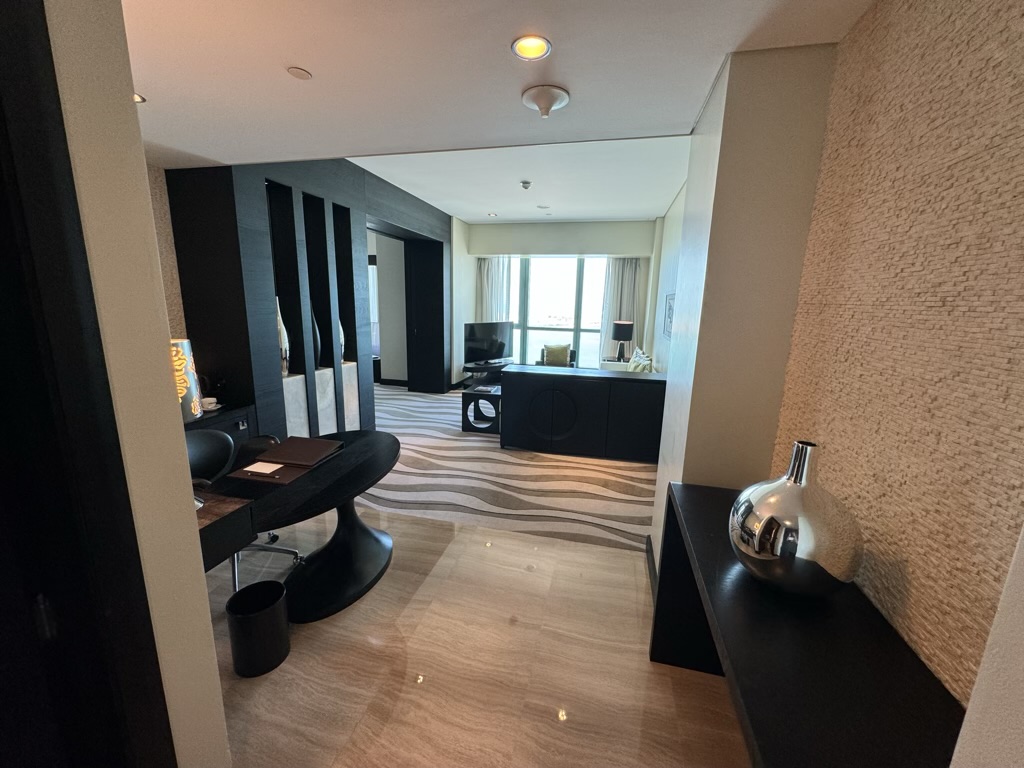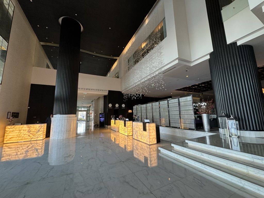 Im Hotel angekommen, steht man in der Lobby, die durch hohe Decken beeindruckt. Wir wurden ohne Wartezeit beim Check-In begrüßt und obwohl wir noch etwas zu früh waren, ca 14:15 Uhr, bekamen wir nach einem zügigen Check-In Prozess die Zimmerkarten für die Zimmer. Uns wurde auch mitgeteilt, dass durch die Buchung einer Accor Step Rate ein View-Upgrade auf Sea-View Zimmer auf einer hohen Etage gewährt wurde.