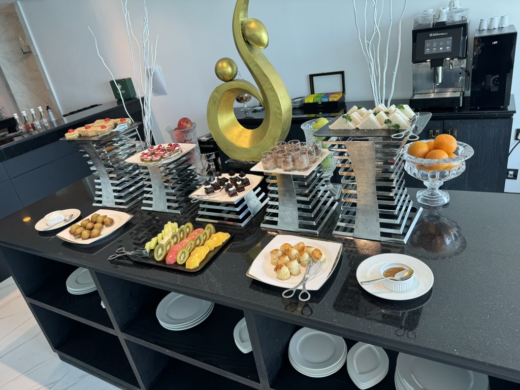 Ganz bewusst haben wir ein Zimmer mit Lounge gebucht, um diese für Euch testen zu können. Die Lounge besteht aus mehreren Räumen, was für uns mit Kindern sehr angenehm war, denn es war in der Lounge wirklich extrem ruhig. So entschieden wir uns in einen abgetrennten Raum zu gehen, um andere nicht zu stören. Insgesamt war die Lounge sehr sauber und stilvoll eingerichtet. Das Buffet bot allerlei Snacks und das Buffet abends zur Happy Hour soll auch ganz ordentlich sein.