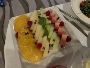 Am nächsten Morgen gingen wir recht zeitig zum Frühstück, es waren noch nicht viele Gäste da. Schön war, dass wir direkt begrüßt wurden und uns zwei Hochstühle angeboten wurden. Wir hatten freie Wahl bei den Tischen und haben uns einen großen Tisch am Rand ausgesucht.