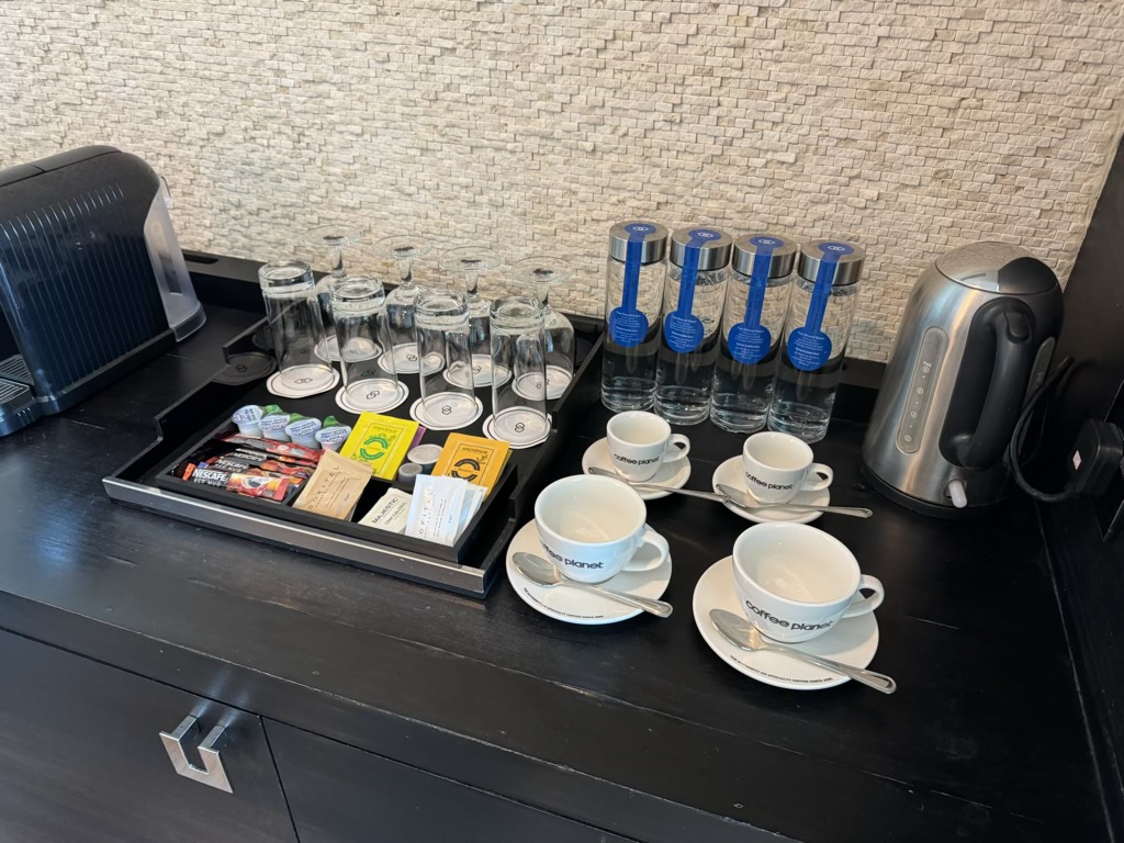 Natürlich gab es hier im Zimmer auch eine kleine Minibar, Kaffee- und Teestation.