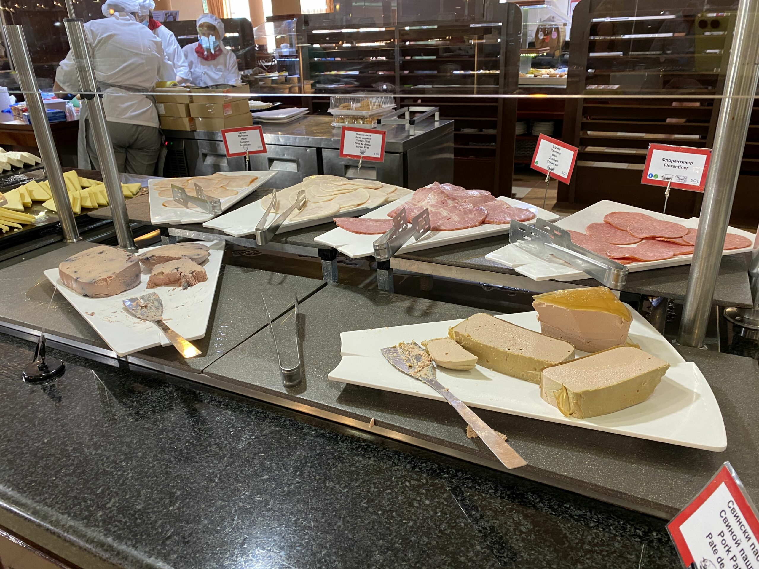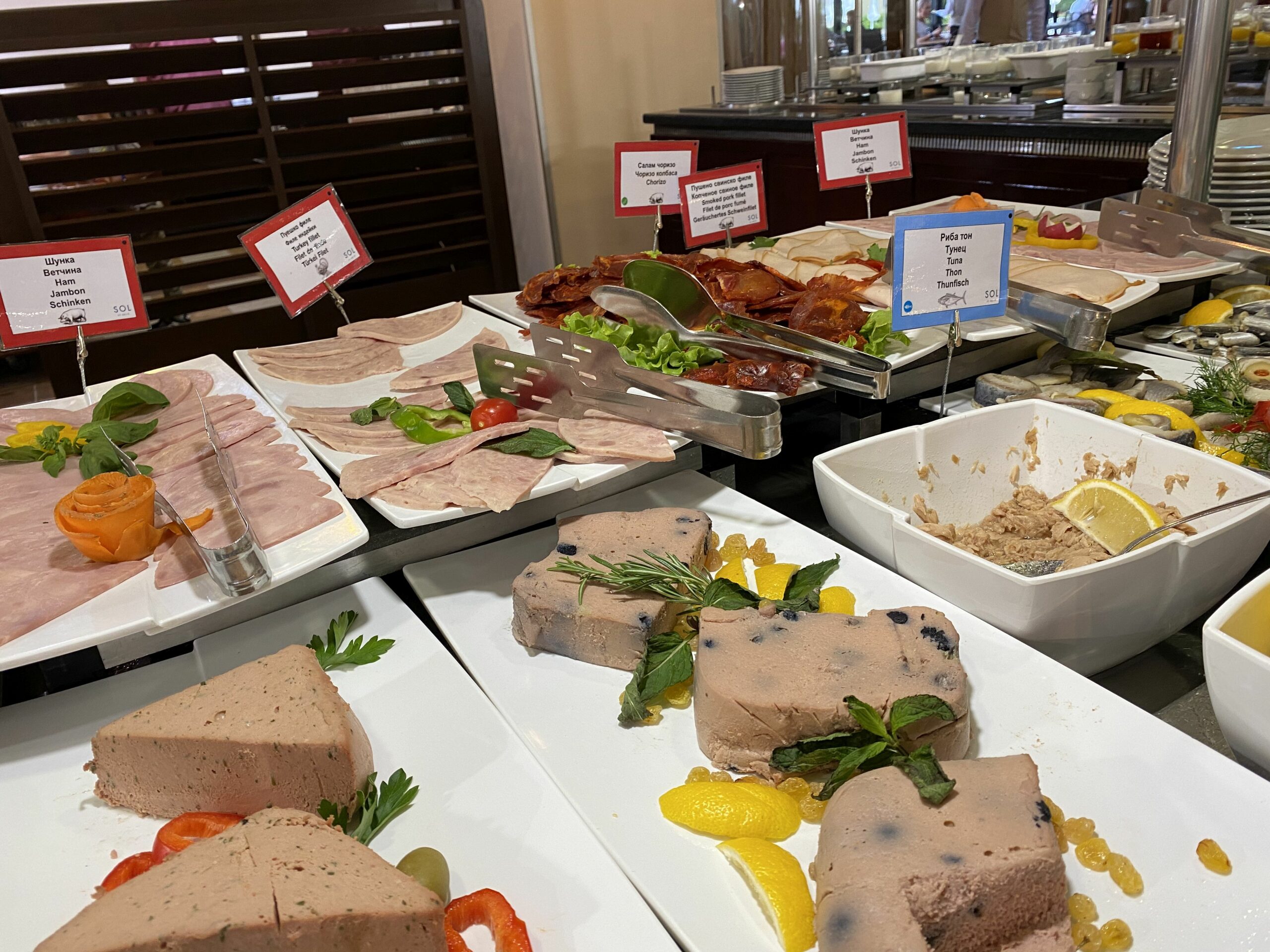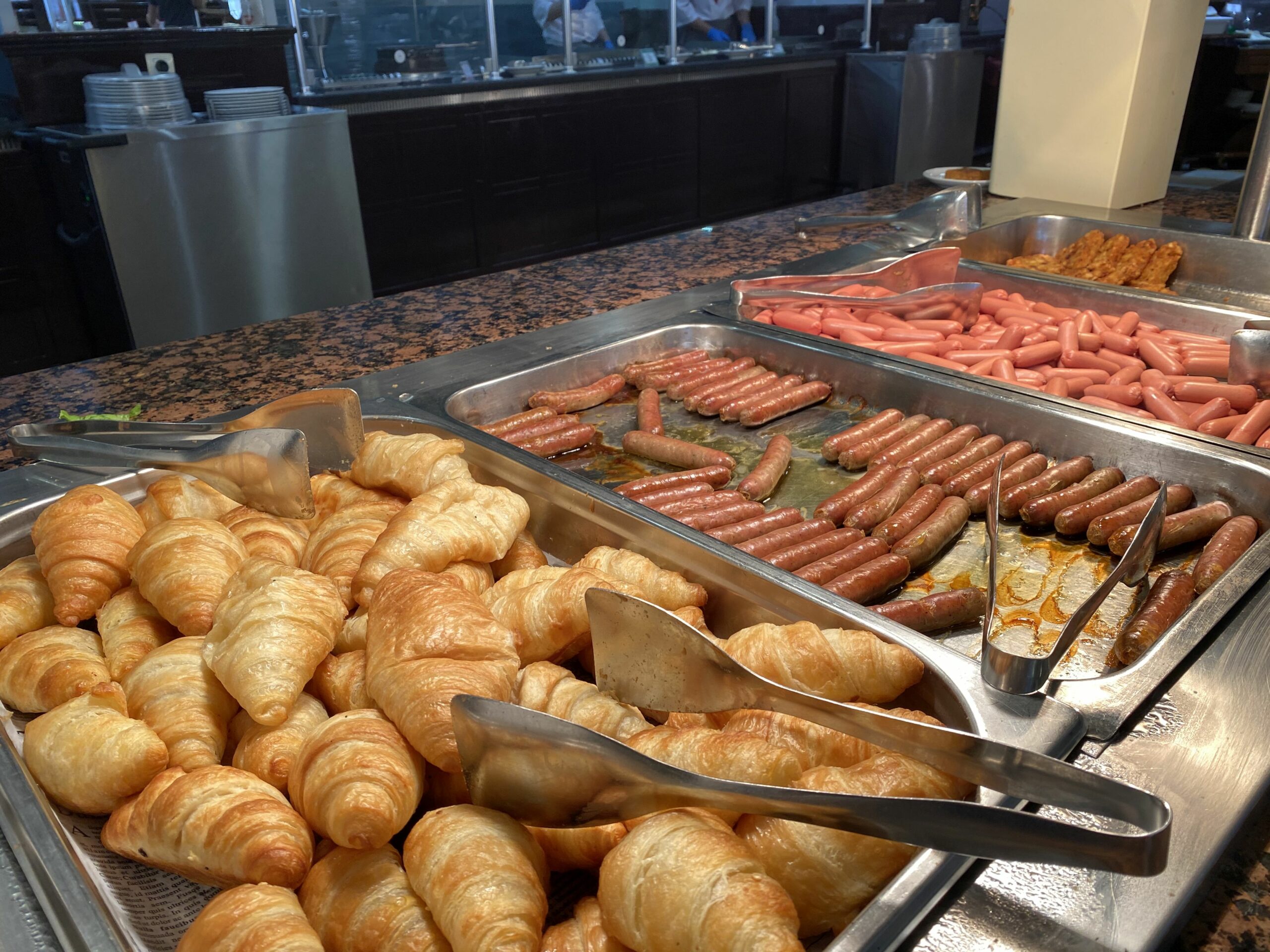 Frühstück wird von früh morgens bis 10 Uhr serviert. Wenn die Auswahl auch von Tag zu Tag wenig bis kaum wechselt, gibt es genügend Optionen für jeden Geschmack. An den Show-Cooking-Stationen werden Eier und Omelettes zubereitet. Omelettes gibt es dabei auch nach Wunsch. Weitere warme Speisen, wie Rührei, gebackene Bohnen oder Röstis stehen zur Selbstbedienung bereit. Darüber hinaus gibt es von Salaten über zahlreiche Marmeladen bis hin zu den frisch zubereiteten Pancakes alles was das Herz begehrt.