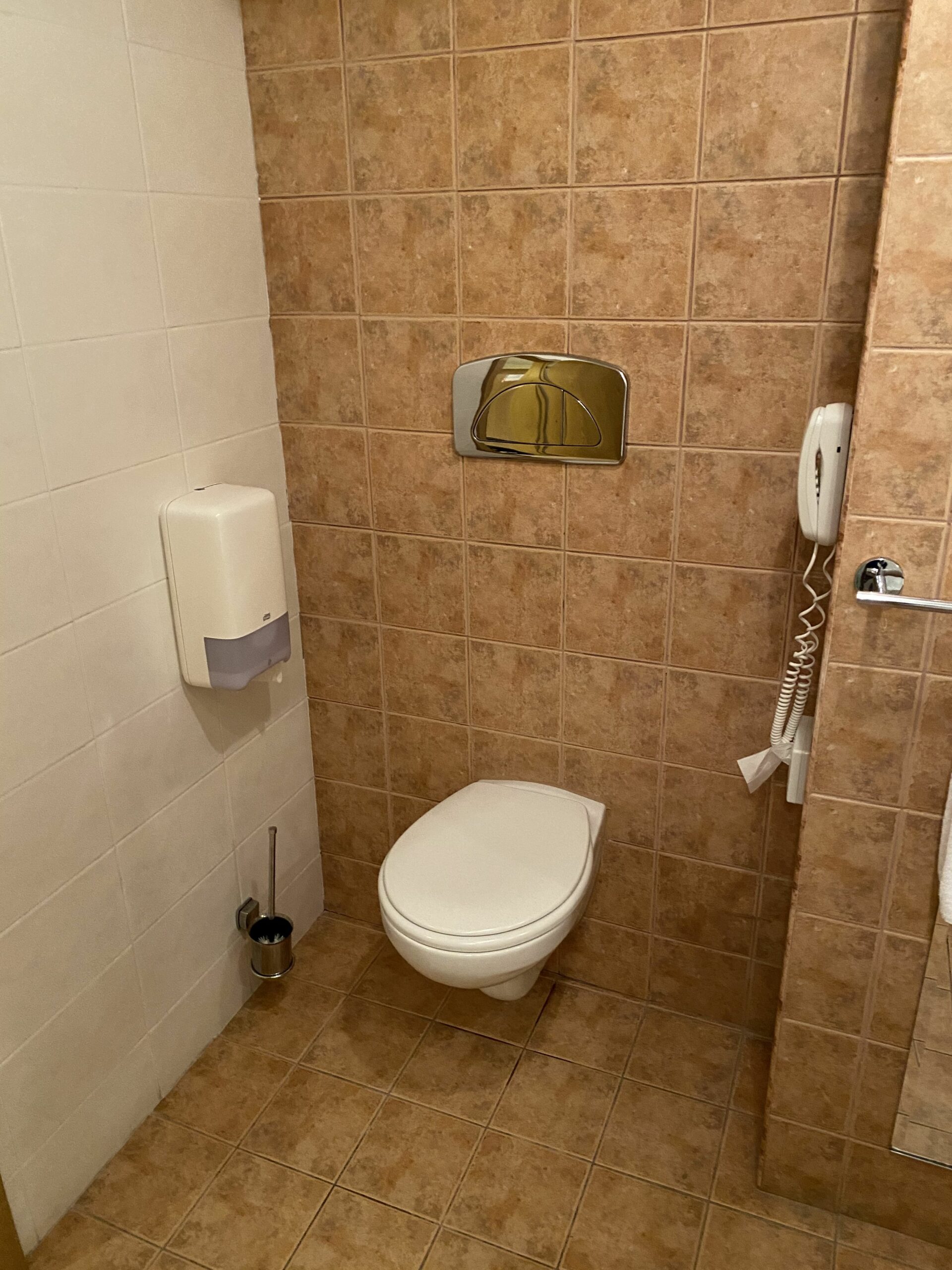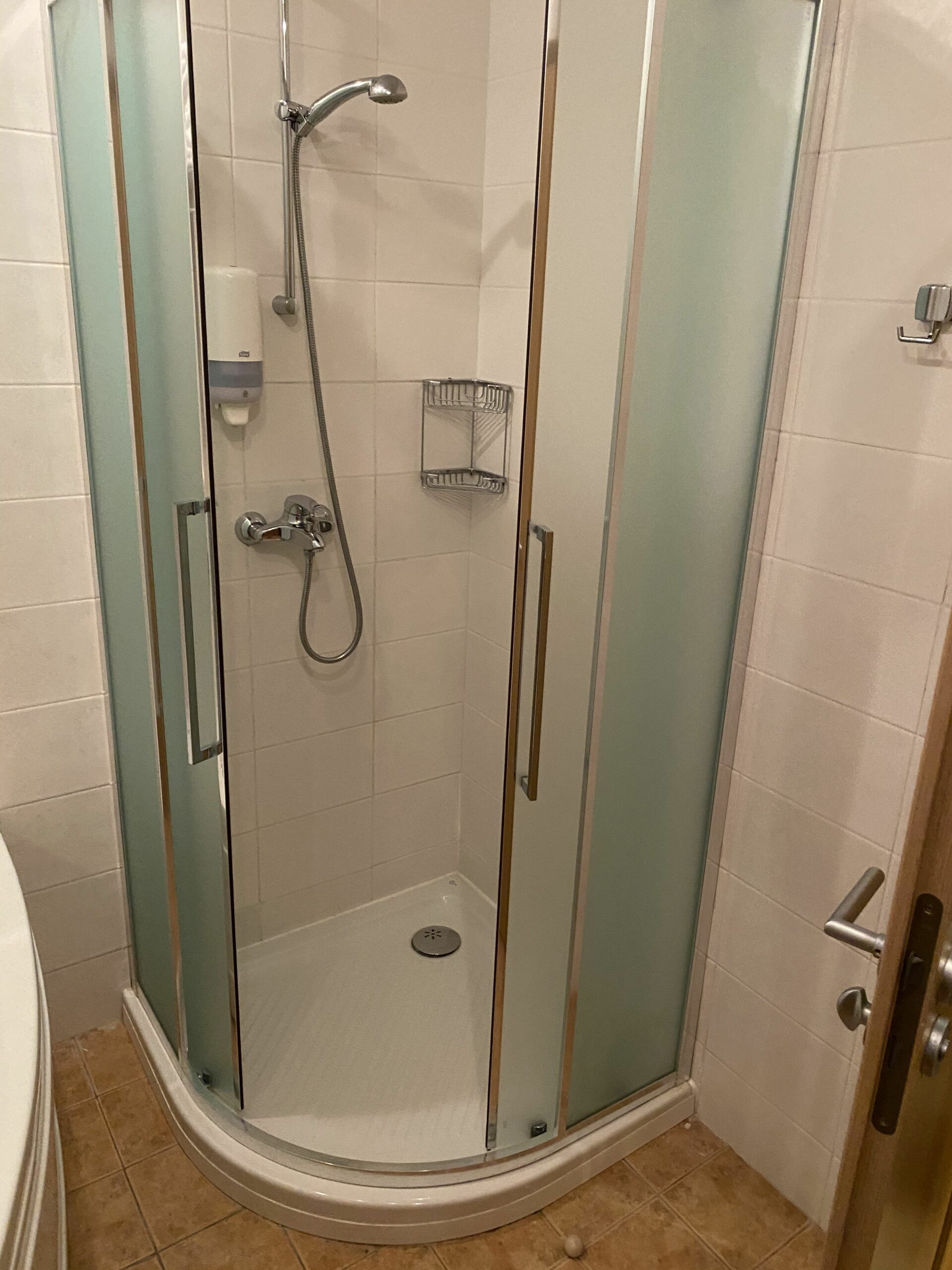 Das Badezimmer verfügte über eine Badewanne und eine separate Dusche. Dazu ein Waschtisch und natürlich die Dusche. Der Wasserdruck war so hoch, dass wir an der Dusche das Wasser nur vorsichtig einschalteten.