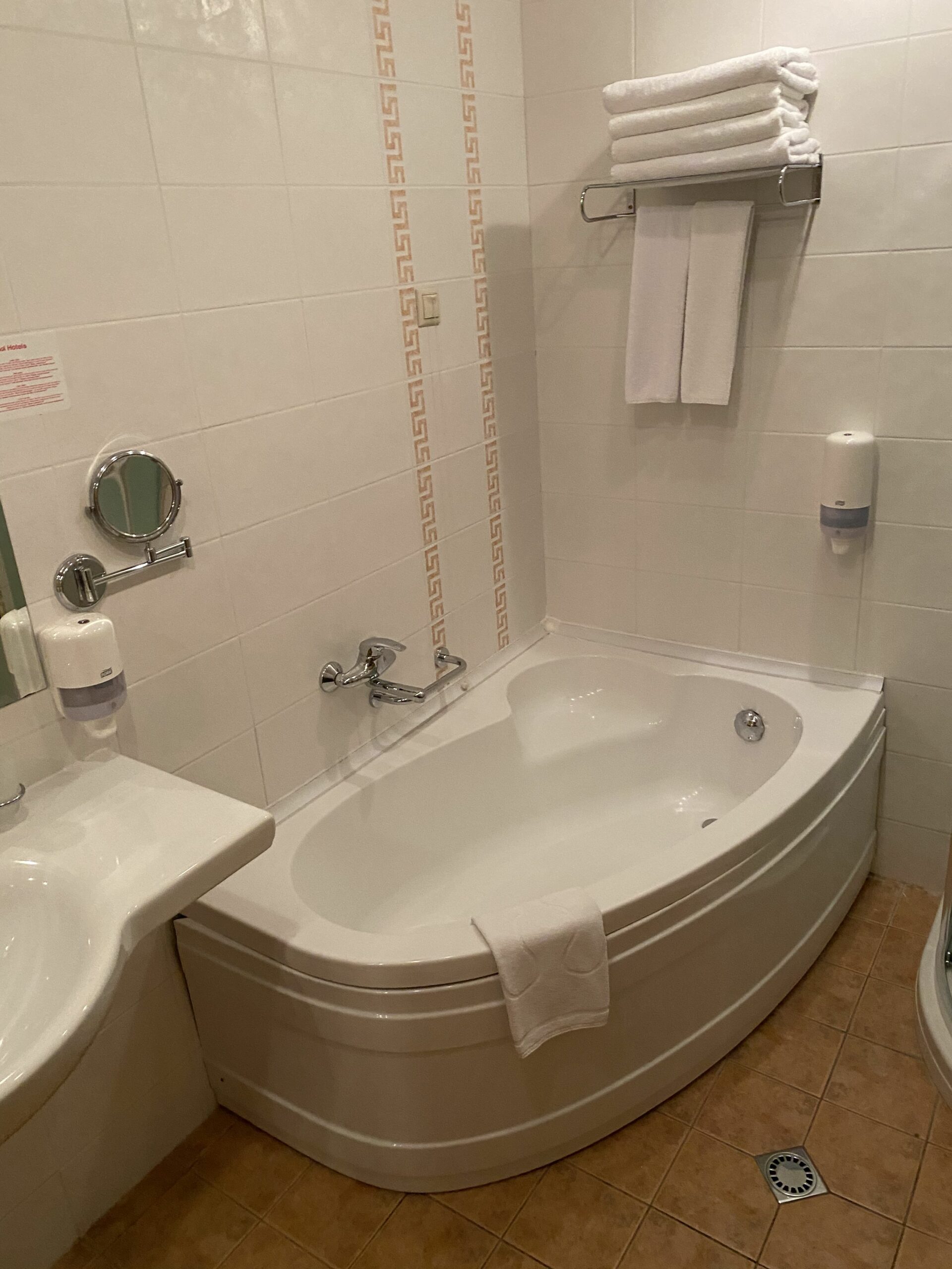 Auch wenn das Hotel normalerweise regelmäßig West- und Mitteleuropäische Gäste aufnimmt, ist englisch nur rudimentär als Sprache ausgeprägt. Das wirkt sich gefühlt an einigen Stellen auf den Service aus, weil die Kommunikation einfach nicht so flüssig funktioniert. Trotzdem haben wir uns sehr gut aufgehoben gefühlt. Vermutlich auch, weil wir mit russisch als Fremdsprache punkten konnte und den Zwillings-Joker hatten.