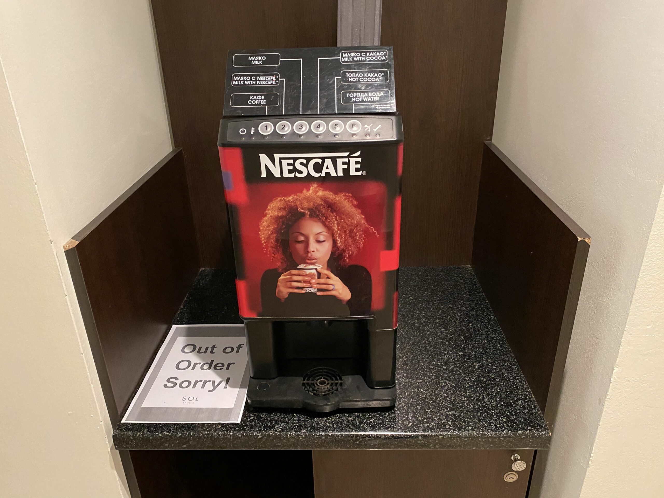 Kaffee, Tee und Säfte bereitet man sich selbst am Automaten zu. Wobei die Säfte leider an der Zapfanlage instant gemixt werden und extrem süß sind. Aber das ist in der Form ja klassisch so bei vielen all-inclusive Resorts, die jetzt nicht im Luxus-Segment liegen.