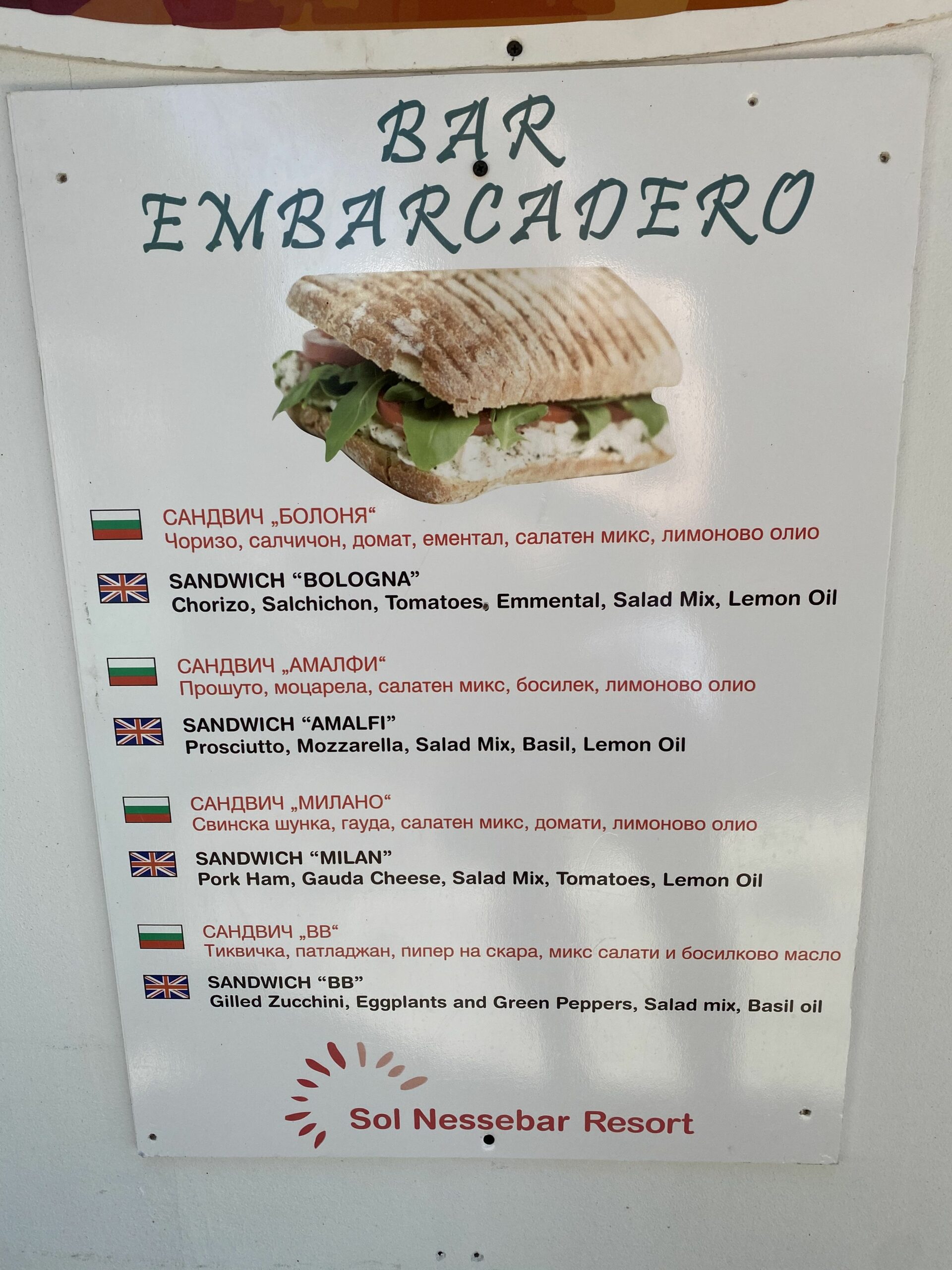- Bar „Embarcadero“: Panini / Sandwiches, Eis