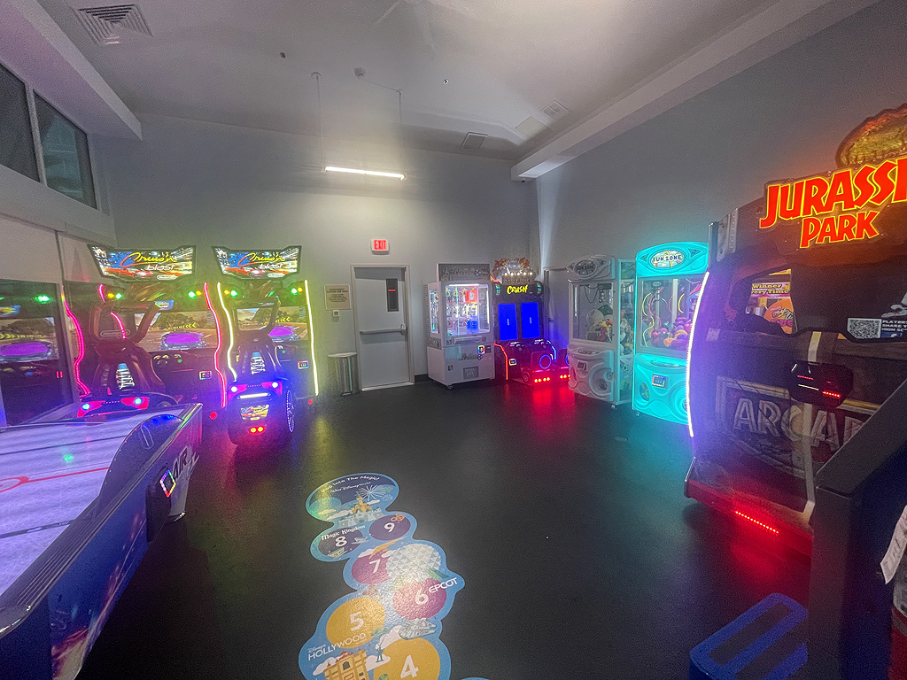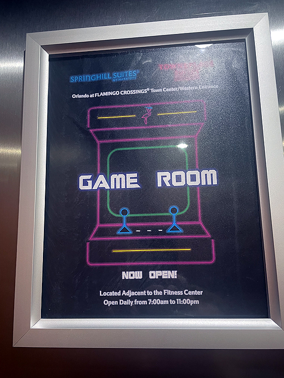 Das Hotel teilt sich ein Grundstück mit dem Town Place Flamingo Crossings. Neben dem geteilten Parkplatz nutzen die Gäste der beiden Hotels denselben Pool, den Fitnessraum und das Game Center. Das ist eine Art Spielhölle, in die Eltern ihre nörgelnden Kinder abschieben können, damit diese dort ständig Dollarnoten in irgendwelche Videospiele stecken.