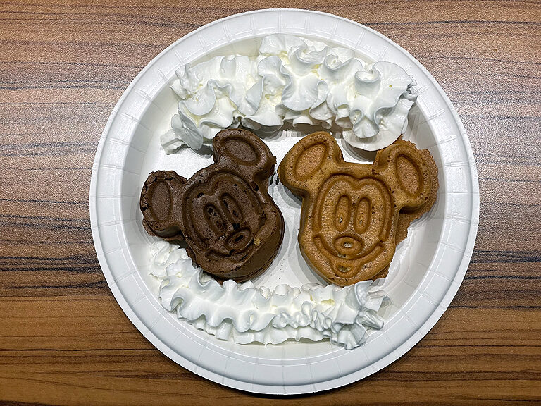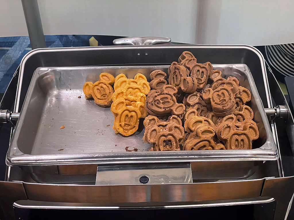 Das Highlight waren jedoch die Mickey-Maus-Waffeln. Wahlweise klassisch oder mit Schokoladengeschmack. Auch wenn sie keine Offenbarung waren, sah das Frühstück mit ihnen einfach besser aus.
