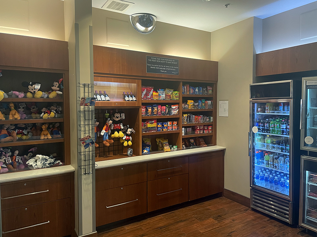 In Springhill Suites gibt es stets eine Einkaufsecke, in der man Snacks und Drogerieartikel zu gehobenen Hotelpreisen erwerben kann. In Orlando dürfen verschiedenste Disney Plüschtiere nicht fehlen.