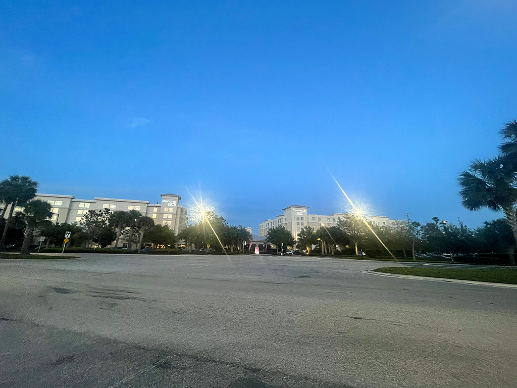 Das Springhill Suites by Marriott Flamingo Crossings liegt in einem neu erschlossenen Gebiet von Orlando mit dem Namen Flamingo Crossings. Flamingos gibt es dort jedoch nicht. Im Wesentlichen handelt es sich um einen großen Parkplatz mit verschiedenen Einkaufsmöglichkeiten und Restaurants. Eine Tankstelle befand sich zum Zeitpunkt unseres Aufenthalts noch im Bau. Um diesen großen Parkplatz herum gibt es verschiedene Hotels von unterschiedlichen Marken. Auffällig ist, dass sie zumeist als Doppelhotels gebaut wurden. Das bedeutet, dass es zwei Hotels gibt, die sich einige Dinge wie den Parkplatz oder den Pool teilen.