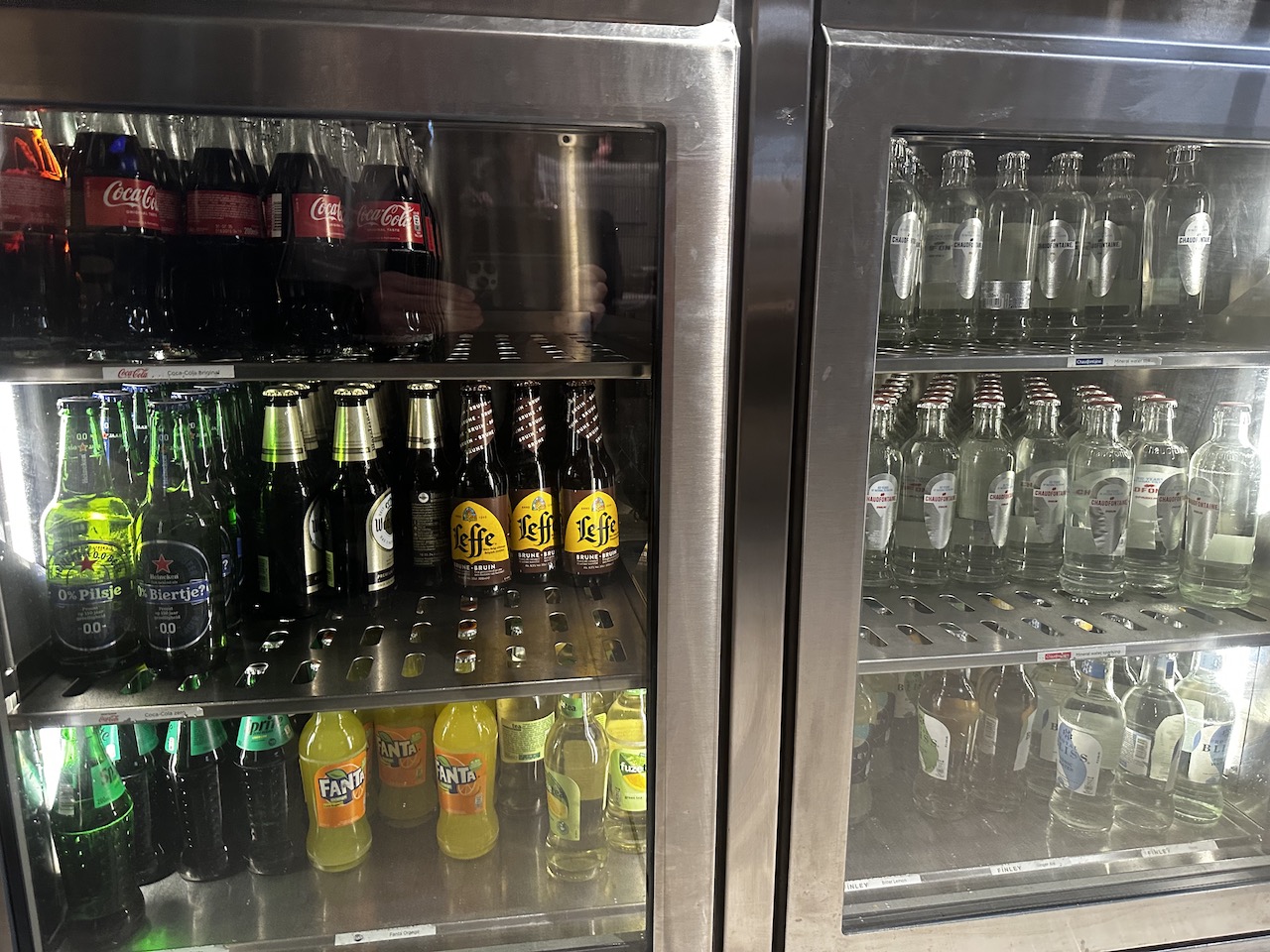 Besucher finden mehrere Kühlschränke mit Softdrinks und Bier.