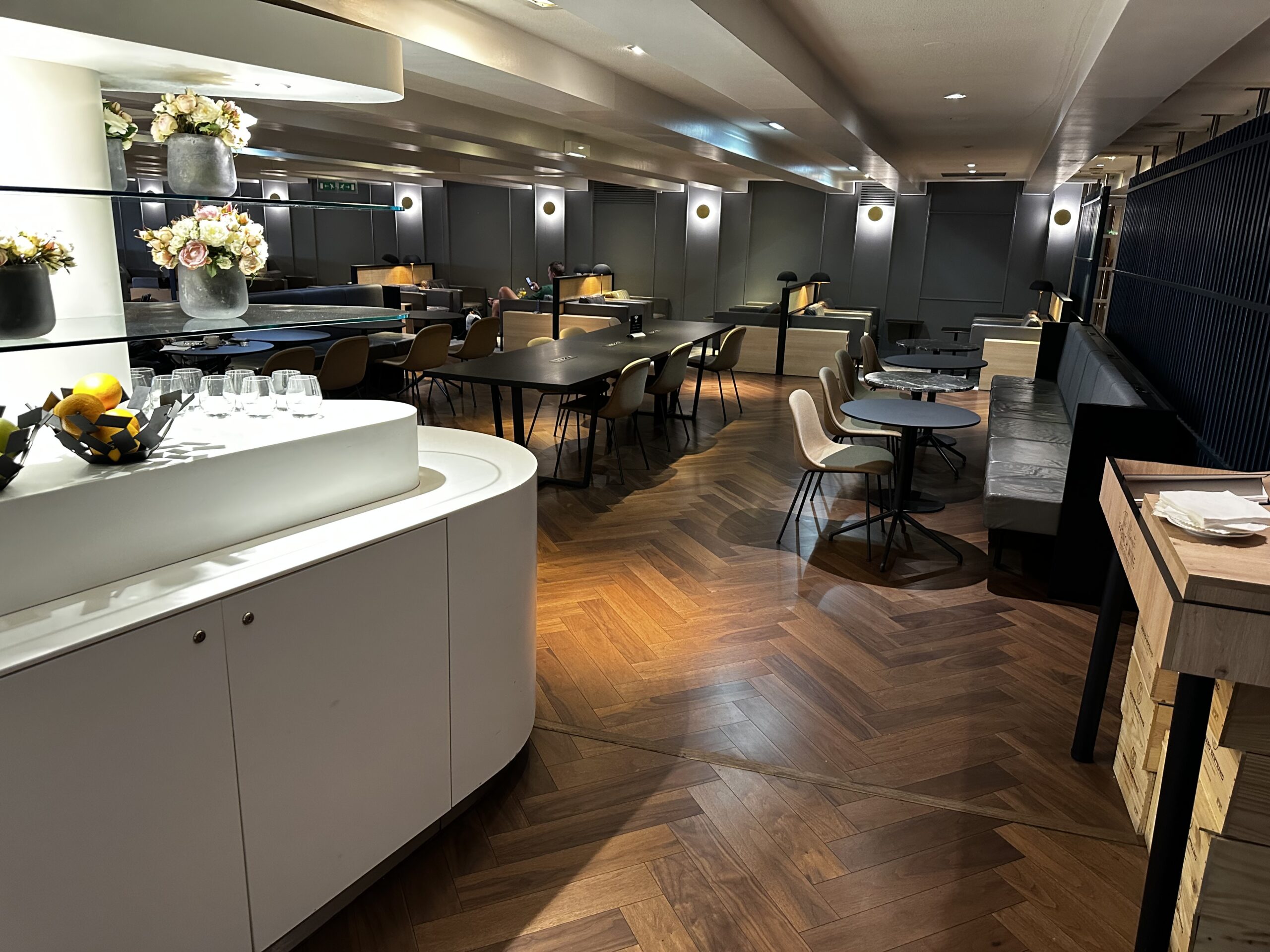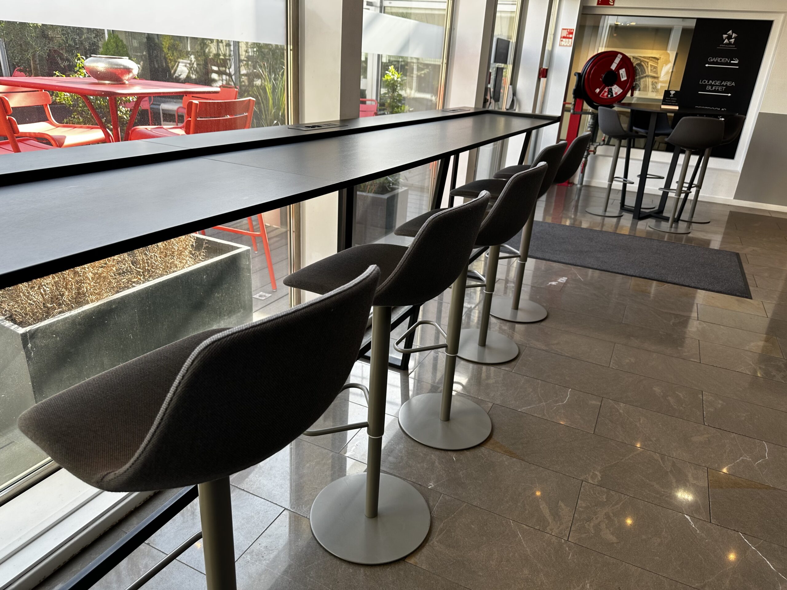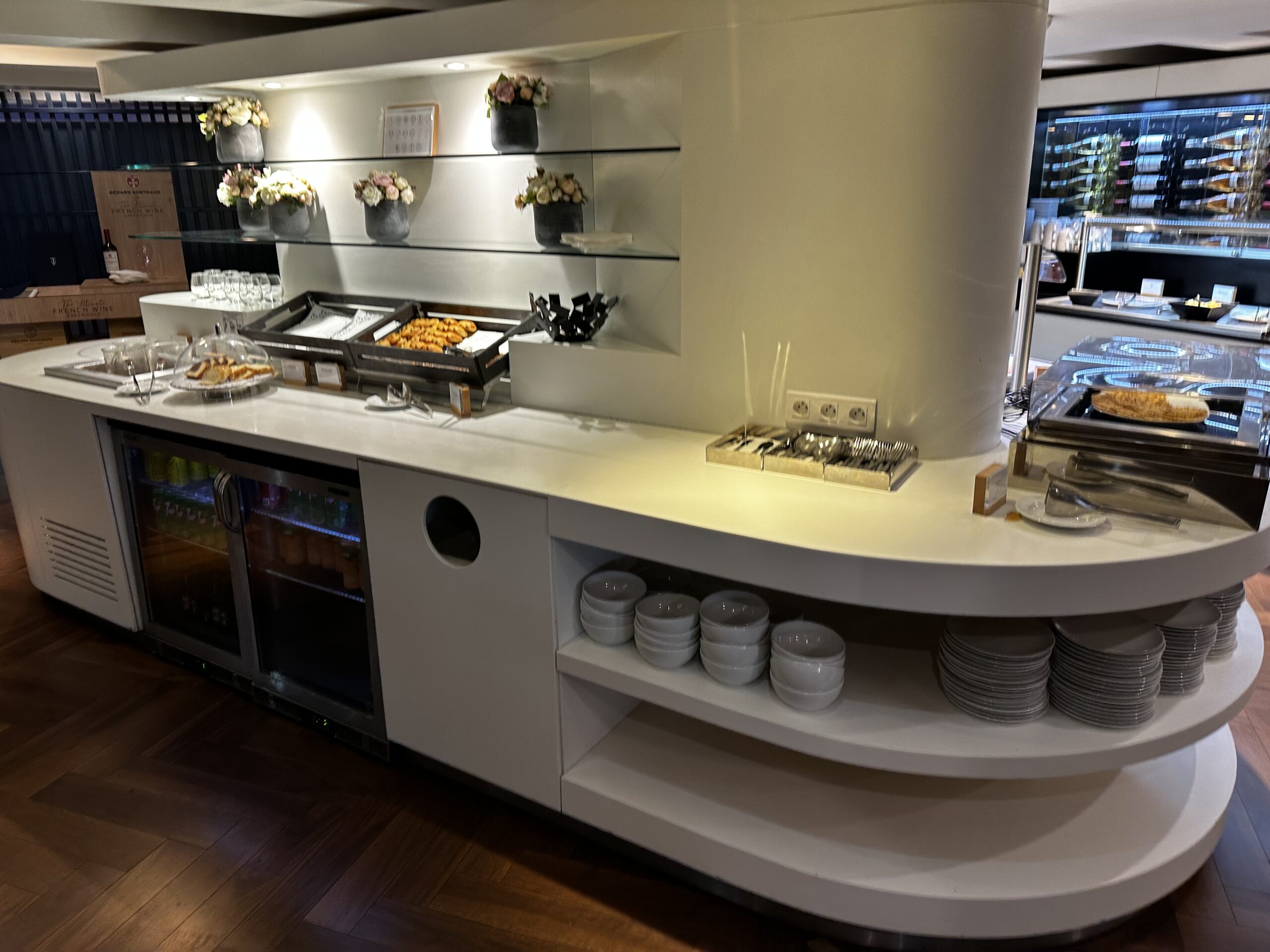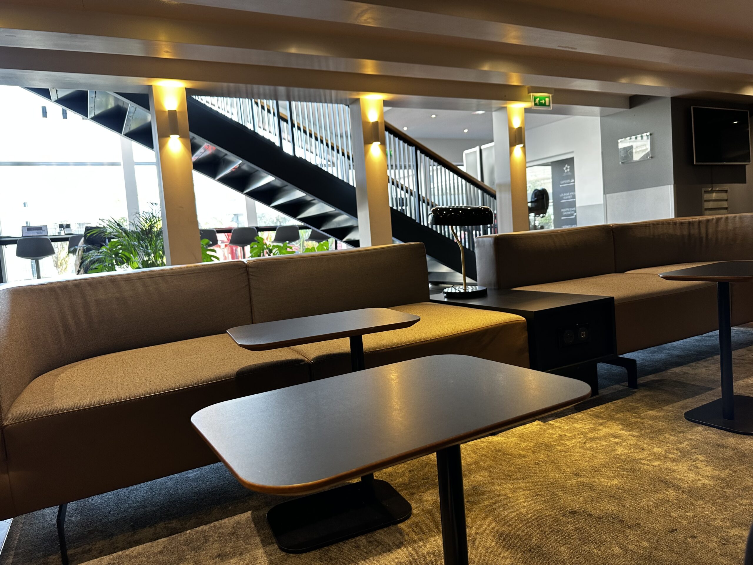Die Lounge und der Buffetbereich sind in einem Raum, bei entsprechender Belegung kann es hier sicher ziemlich laut und unruhig werden. Ich hatte aber Glück und konnte hier in Ruhe arbeiten.