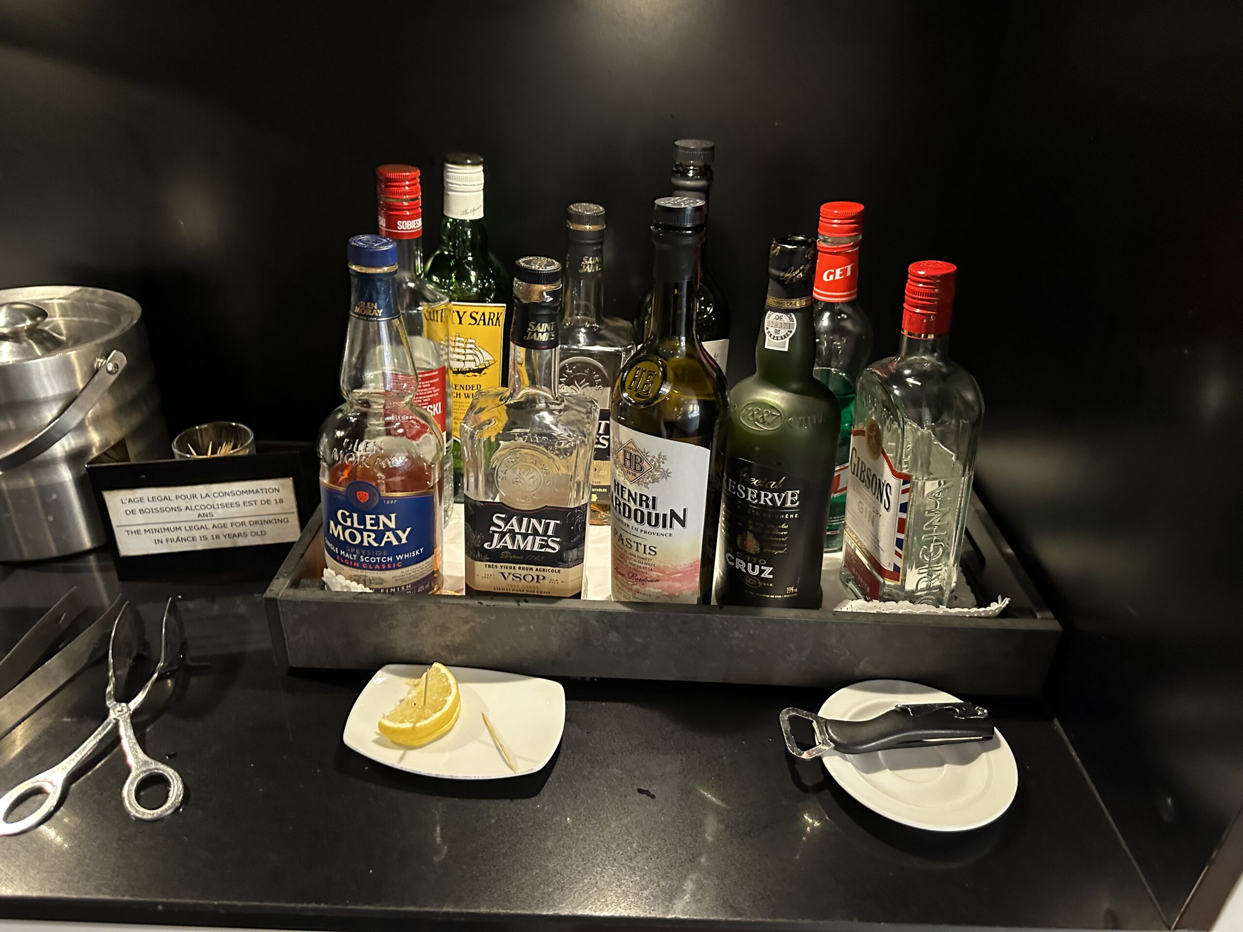 Es gab aber schon eine recht breite Auswahl an Getränken. Neben Softdrinks und Heißgetränken waren Weine, Cremant, Bier und Spirituosen verfügbar.