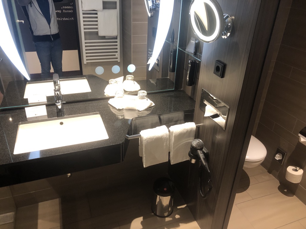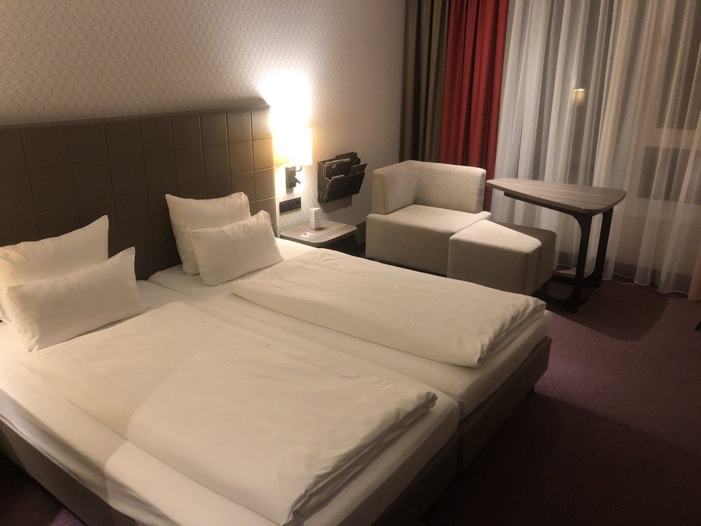 Das Steigenberger Parkhotel Braunschweig ist erst einige Jahre jung. Dies machte sich jedoch gar nicht so massiv im Zimmer bemerkbar, wie zunächst vermutet. Dieses vermittelte eher einen „jugendlichen“ Eindruck. Besonders der sehr kleine Fernseher ist eigentlich ein No-Go für ein ansonsten modernes Hotel. Weiterhin wurden übliche Amenities wie Telefon und Wasserkocher angeboten.