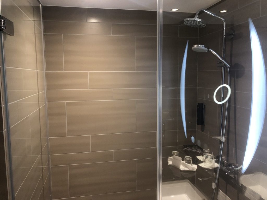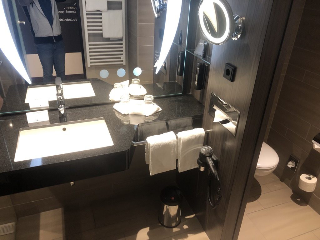 Auch das Badezimmer enttäuschte uns eher. Dieses verfügte leider über eine nicht komplett geschlossene Dusche. Zwar mag es modern sein die Tür zur Dusche einzusparen, jedoch verursacht dies auch meist massive Überschwemmungen im gesamten Raum.