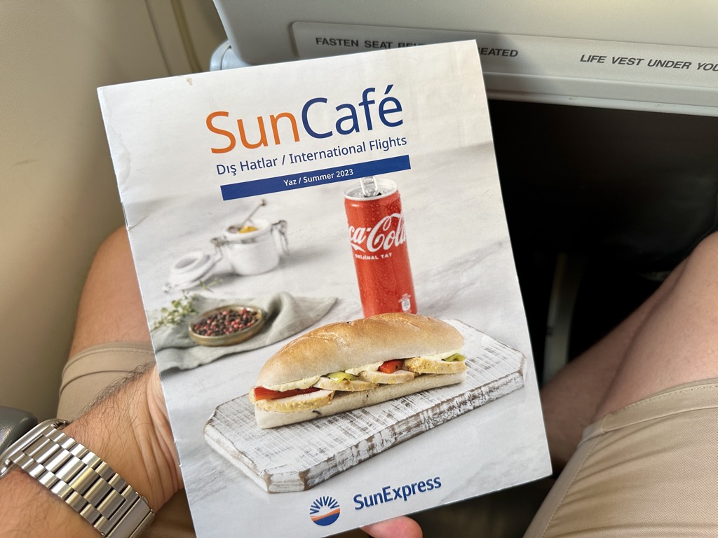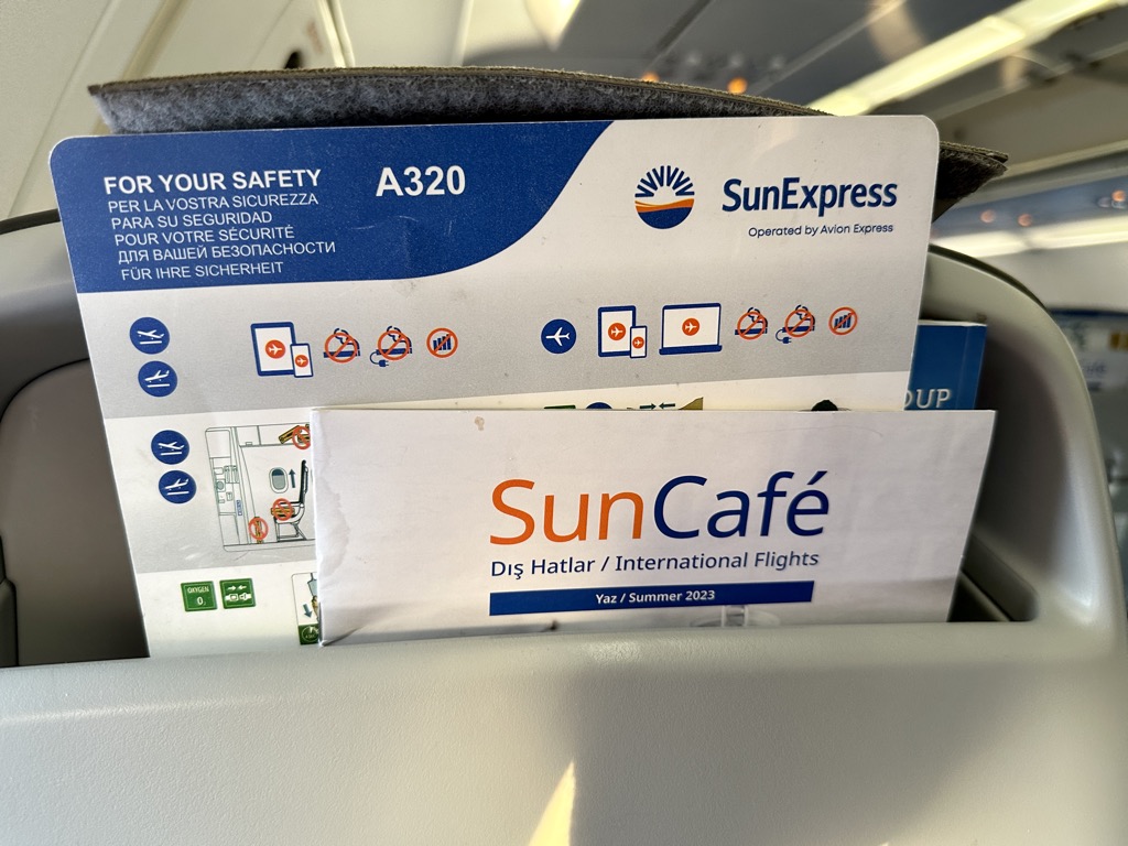 SunExpress stellt grundsätzlich kein eigenes Inflight-Entertainment-System bereit, allerdings ist mir direkt das bei der Airline noch vorhandene eigene Magazin in Papierform aufgefallen. Nachdem dieses bei zahlreichen Airlines während der Corona-Zeit abgeschafft wurde, war ich umso mehr positiv überrascht, dass ich auf diesem Flug nach langer Zeit wieder einmal etwas über neue bzw. ausgewählte Destinationen der Airline, Reisetipps und nicht zuletzt Informationen zu Flotte lesen konnte.