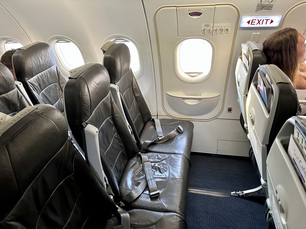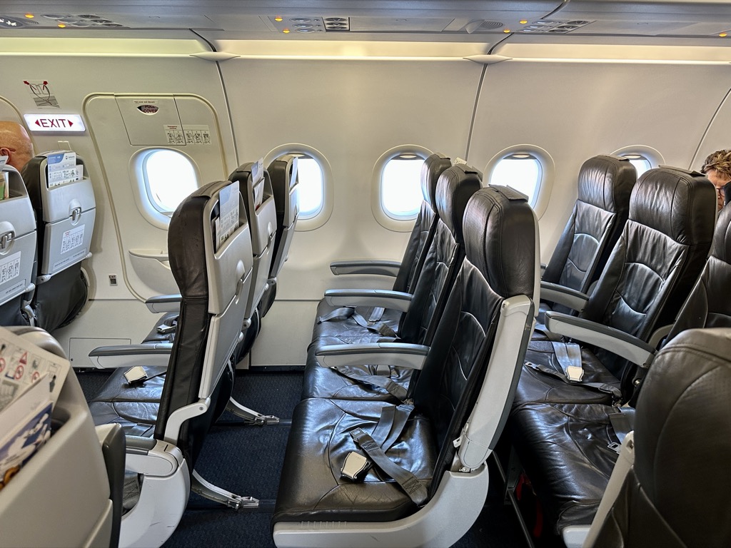 Der von Avion Express betriebene Airbus A320 kommt mit einer üblichen 3-3-Konfiguration daher. Eine Business Class bzw. ein differenzierter Bereich im vorderen Teil der Kabine wird hierbei nicht angeboten. Insgesamt ist mir aber direkt positiv aufgefallen, dass die Sitze sich von den in Europa üblicherweise verbauten „dünnen“ Sitzen unterschieden und somit direkt bequemer wirkten.