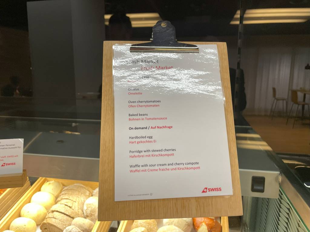 Die SWISS Arrival Lounge fokussiert sich voll auf die wichtigste Mahlzeit des Tages. Ein ausgiebiges Frühstücksbuffet mit hart gekochten Eiern und Rührei befindet sich direkt hinter der Bar. Wer es etwas leichter mag, kann sich eines der köstlichen Gipfeli zu einer Tasse Cappuccino gutgehen lassen. Auch Wurstaufschnitt, Käse, Joghurt und Obst sind genauso vorhanden wie weitere Backwaren und gebackene Bohnen.
