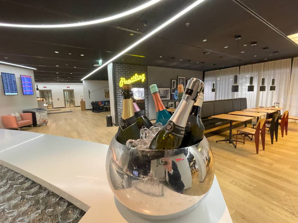 Auch wenn während der Öffnungszeit eher die Kaffeevollautomaten Fließbandarbeit leisten und Softdrinks gezapft werden, gibt es auch alkoholhaltige Getränke. Wie oben bereits kurz angeschnitten, gibt es dafür eine eigene Bar, die während unseres Aufenthalts jedoch nicht bemannt war. Dafür gab es allerdings diverse Spirituosen, Weine und Biere aus dem typischen SWISS Lounge-Sortiment zur Selbstbedienung.