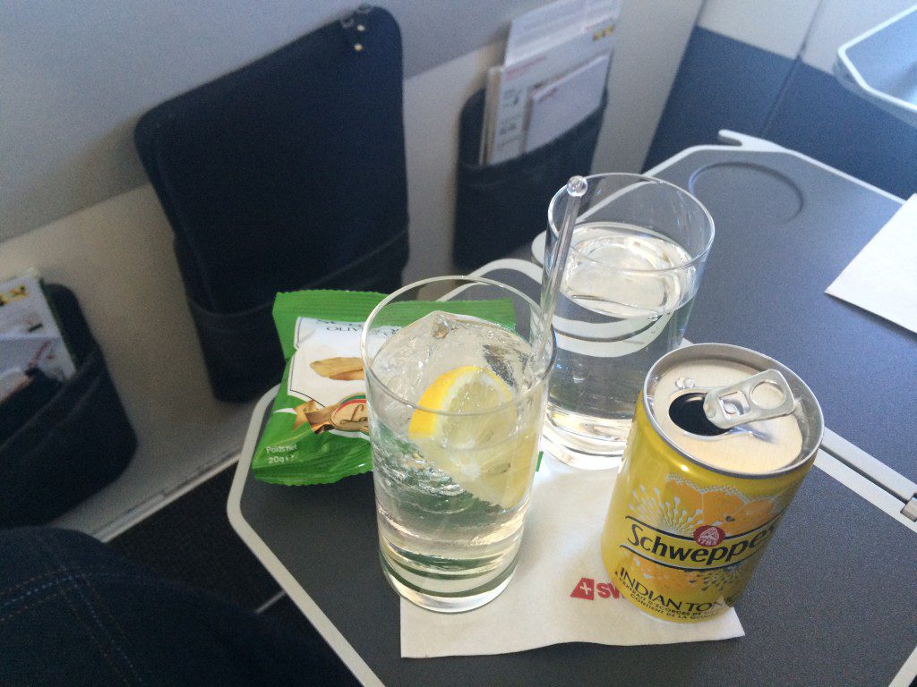 Nach wenigen Minuten konnten wir allerdings als eine der ersten Passagiere einsteigen, was ich auch jedem empfehlen würde, wenn er mit Handgepäck reist. Stauraum ist in den Airbus A320 der Swiss auf diesen Flügen absolute Mangelware, da einige Dinge, welche für den Service gebraucht werden in den Bins der Business Class verstaut werden müssen.